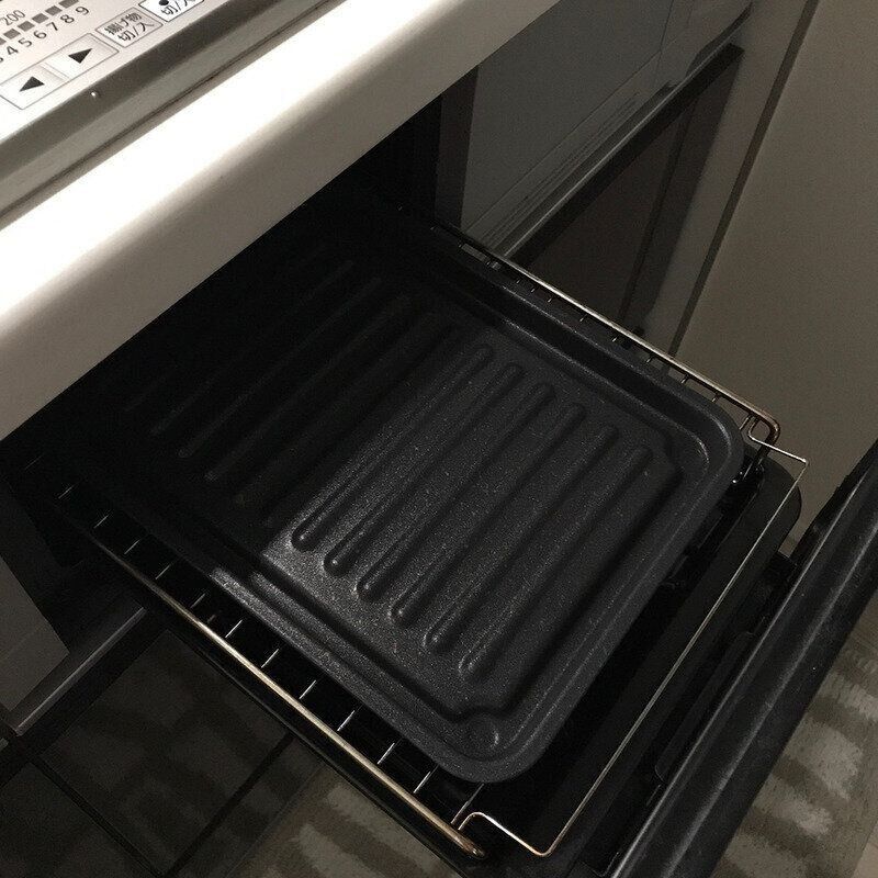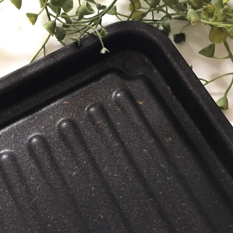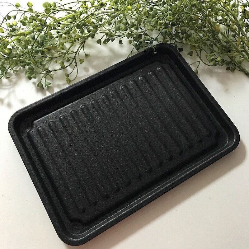 このトレーを見つけてから、我が家では焼き魚が食卓に並ぶ回数がすごく増えたような気がします。マーブルコート仕上げなので汚れを簡単に落とすことができ、後片付けが劇的にラクになりましたよ。また、野菜やお肉を焼いたり、パンのトーストもできるので料理の幅が広がります。