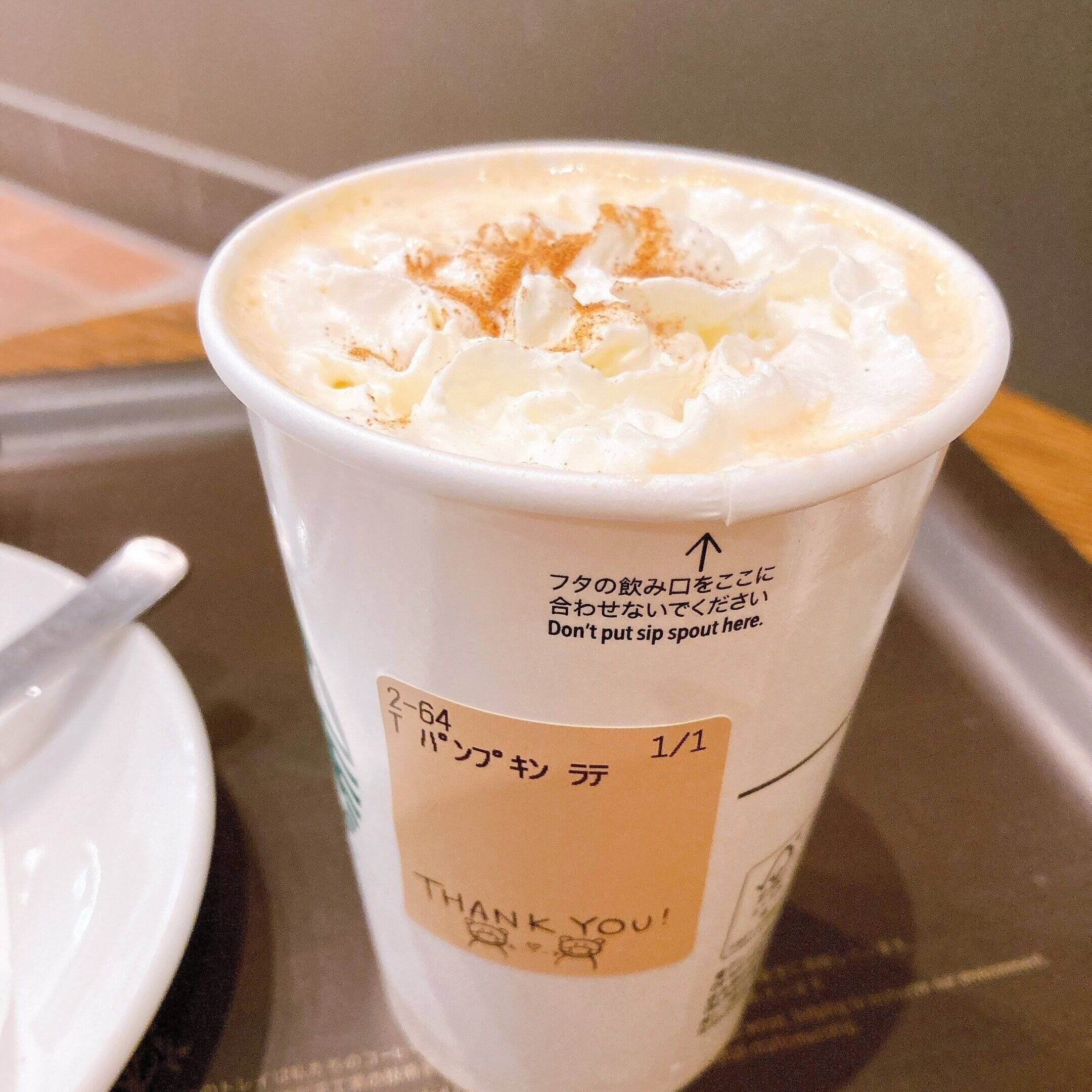 このパンプキンラテは日本では15年ぶりの発売ですが、海外ではこの時期の定番ドリンクで、海外のスタバで秋に飲んだことがあったのでとても楽しみにしていました。