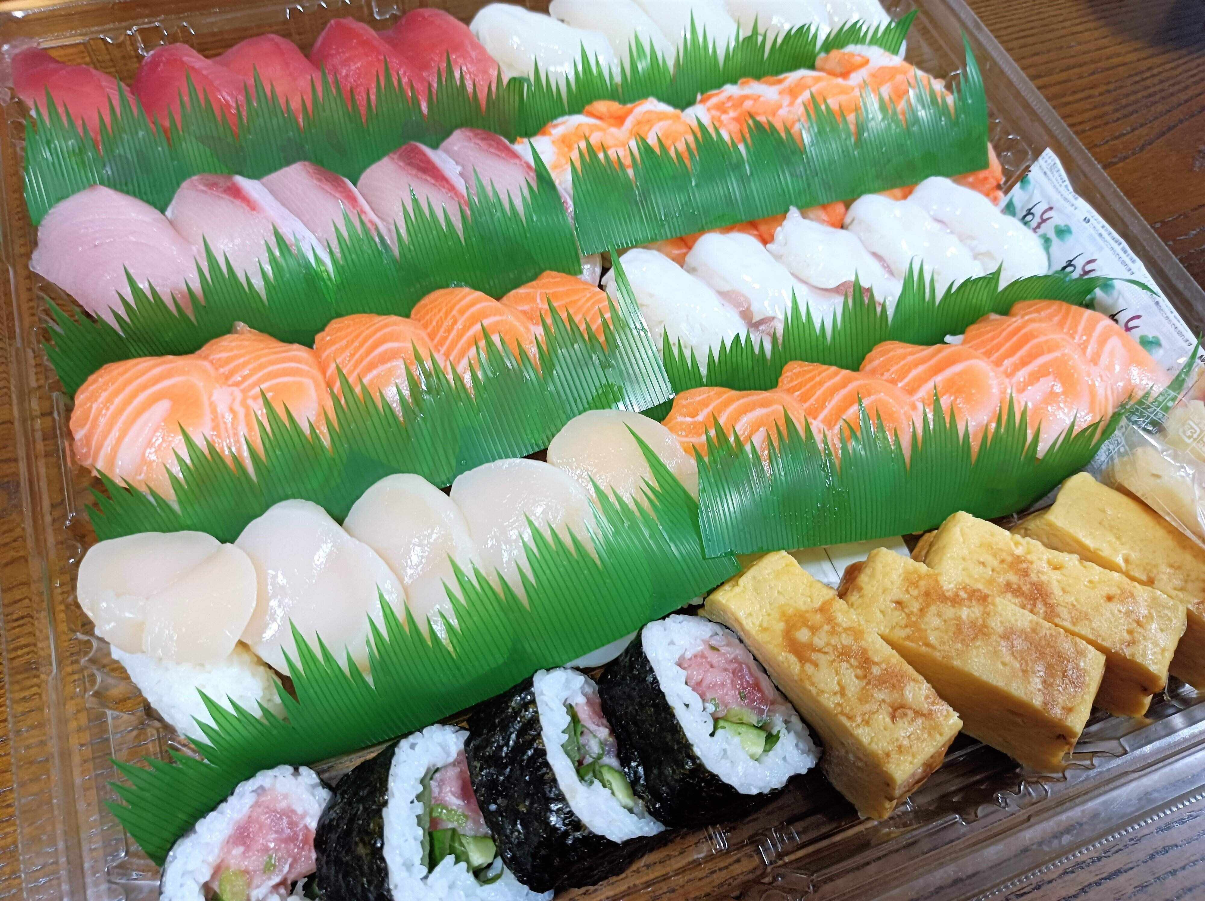 筆者は、毎回のようにこのお寿司を購入して家族で楽しんでいます。家族5人でも満足のこの量でなんと2,678円(税込)です。1貫あたり約56円(税込)です。