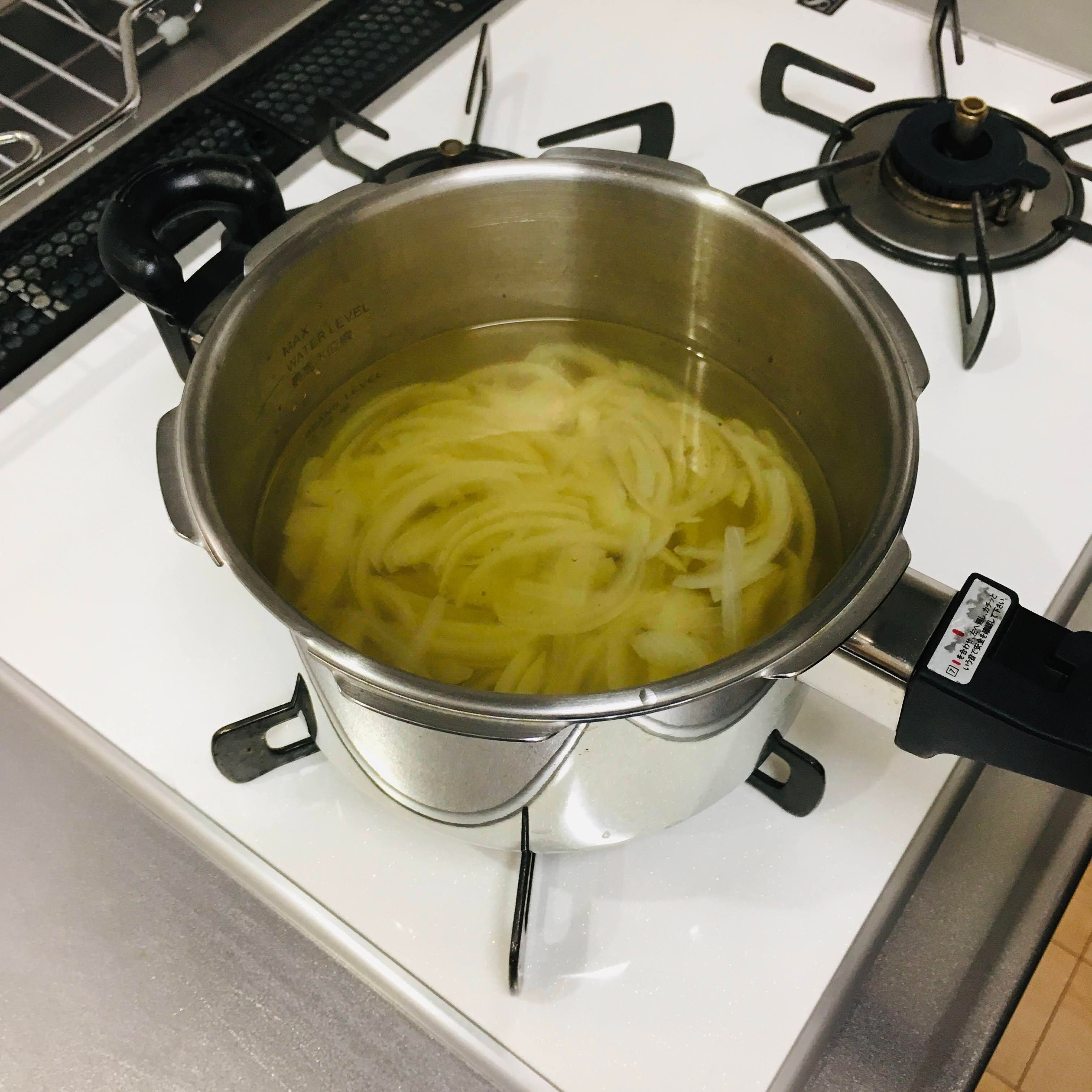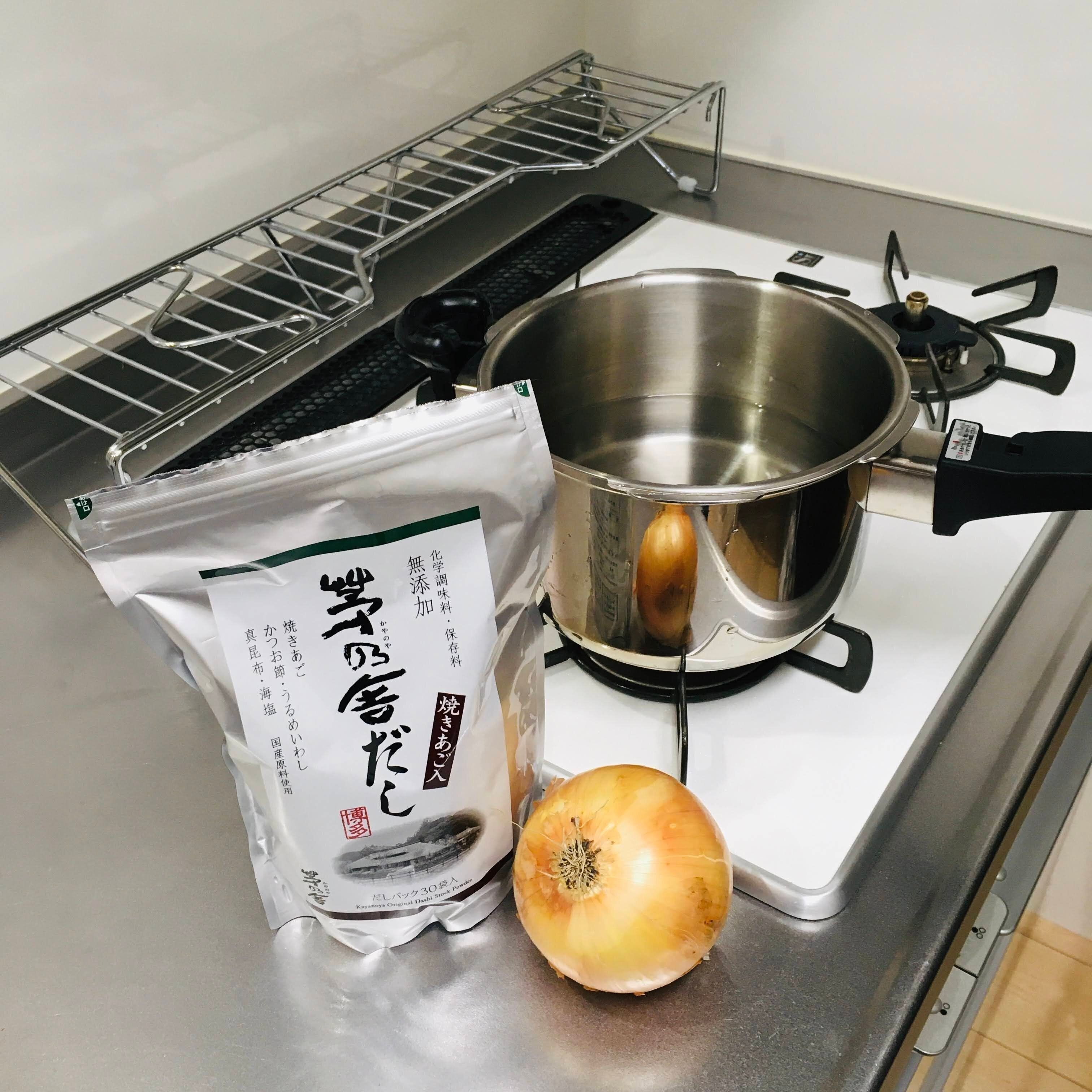 豚の角煮や煮物など長時間の煮込み料理によく使われる圧力鍋ですが、わが家ではお味噌汁も圧力鍋でつくります。だしと玉ねぎを圧力鍋に入れて加圧2分。あっという間に玉ねぎがトロトロになりおいしく出来上がります。あれこれ具材を入れず、ひとつの食材を味わうのが最近のブームです。