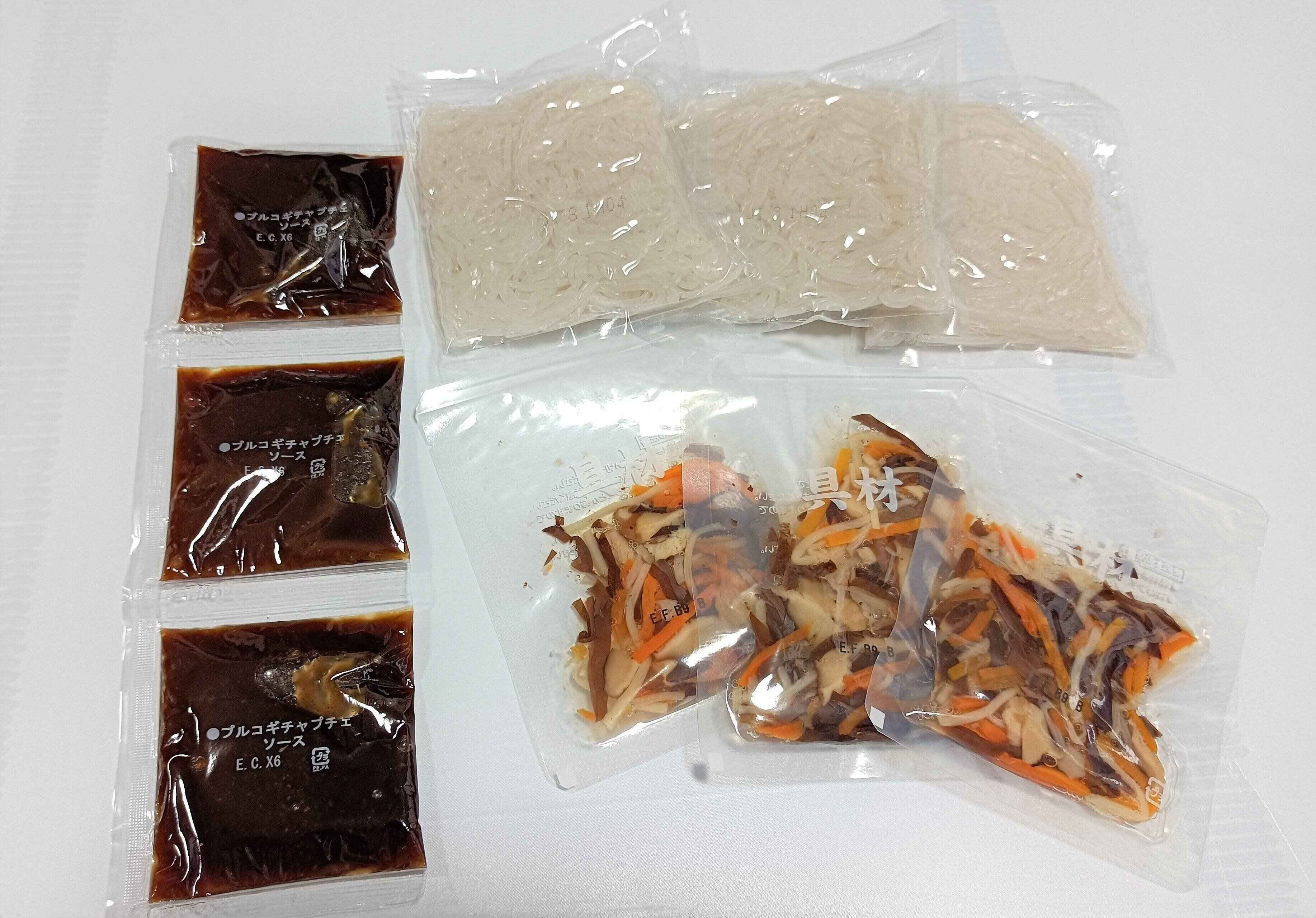 「プルコギ チャプチェ」は2人前x3セット入っています。