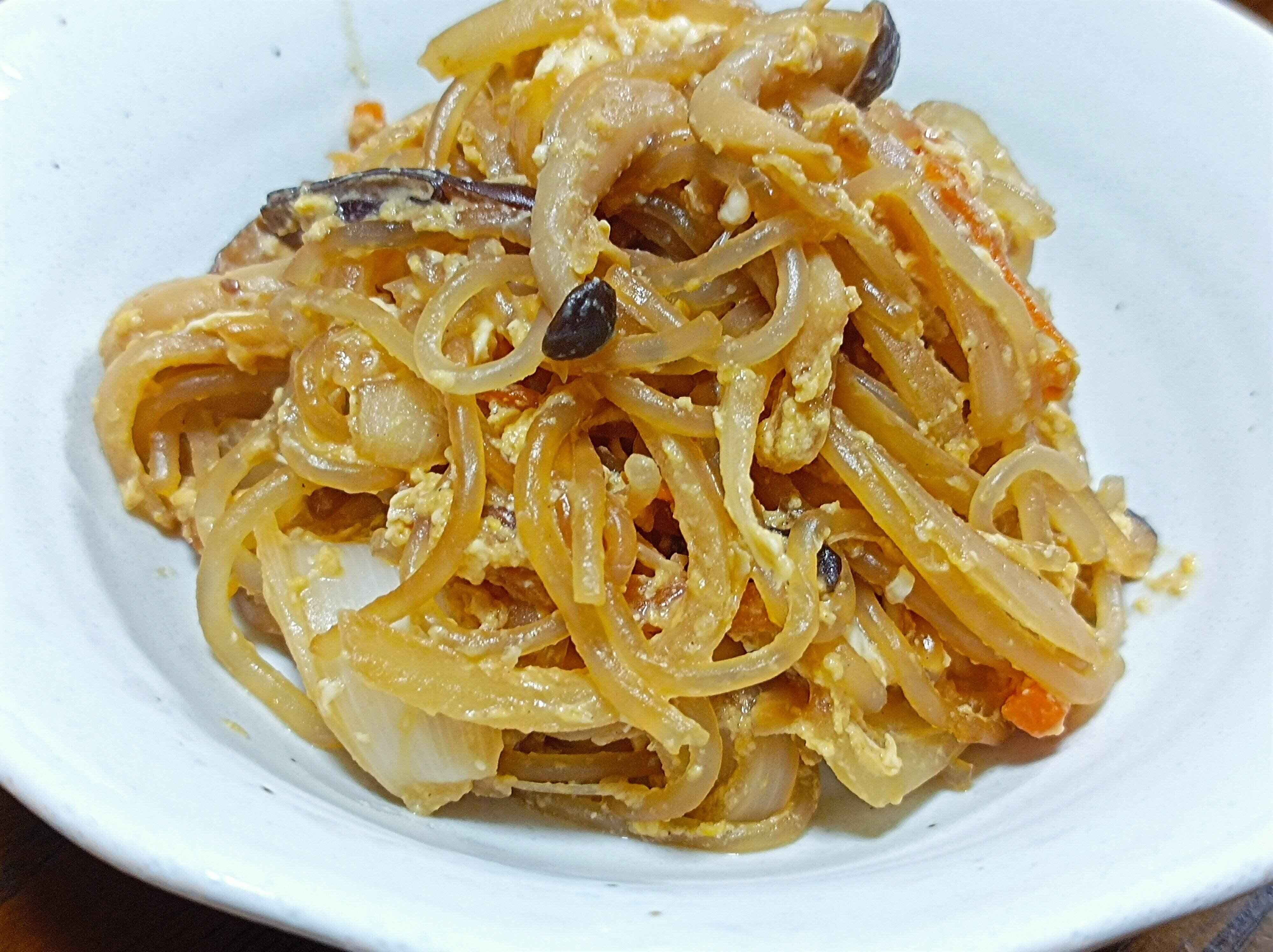 実際につくってみると、基本の具材もカットされていれるだけだし、とっても簡単でした。そしてできあがったチャプチェはタレがしっかり絡んでいて白ご飯も進む味です。