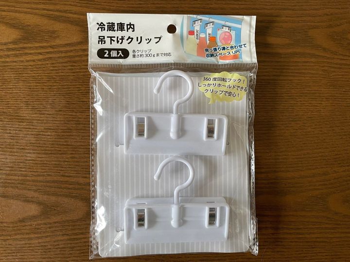 ご紹介する商品は、100円ショップ「ワッツ」の「冷蔵庫内吊り下げクリップ」。