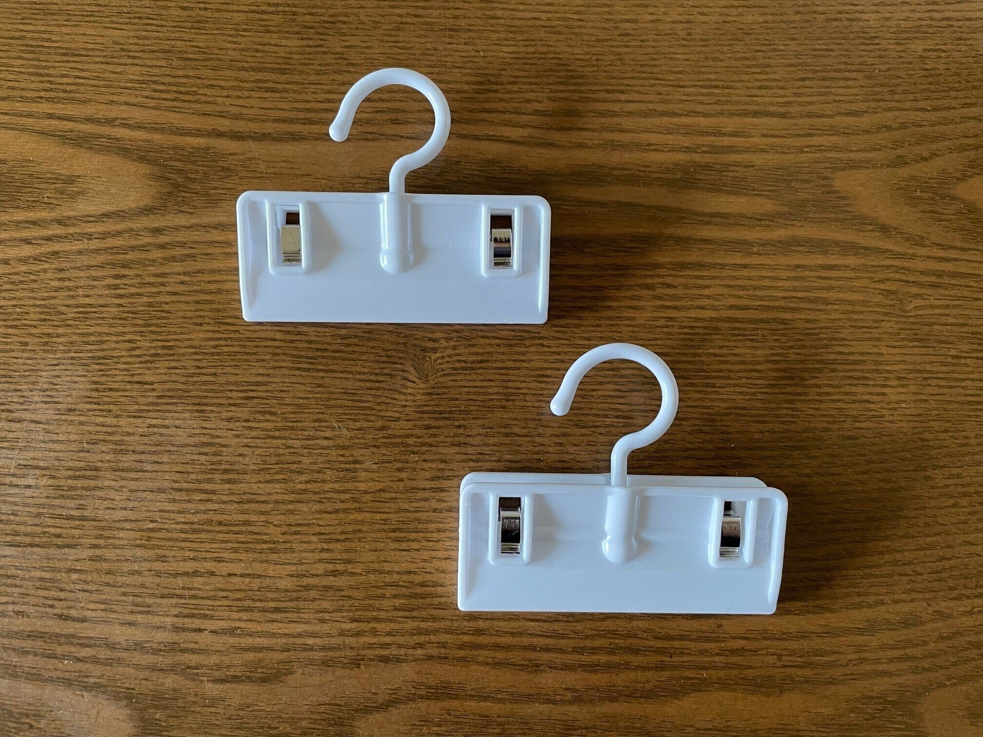 約8cmの幅広のクリップの上にハンガーのようなフックがついており、吊り下げ収納が可能です。フックは360度回転するので、かける方向も選びません。価格は2個入りで110円です。