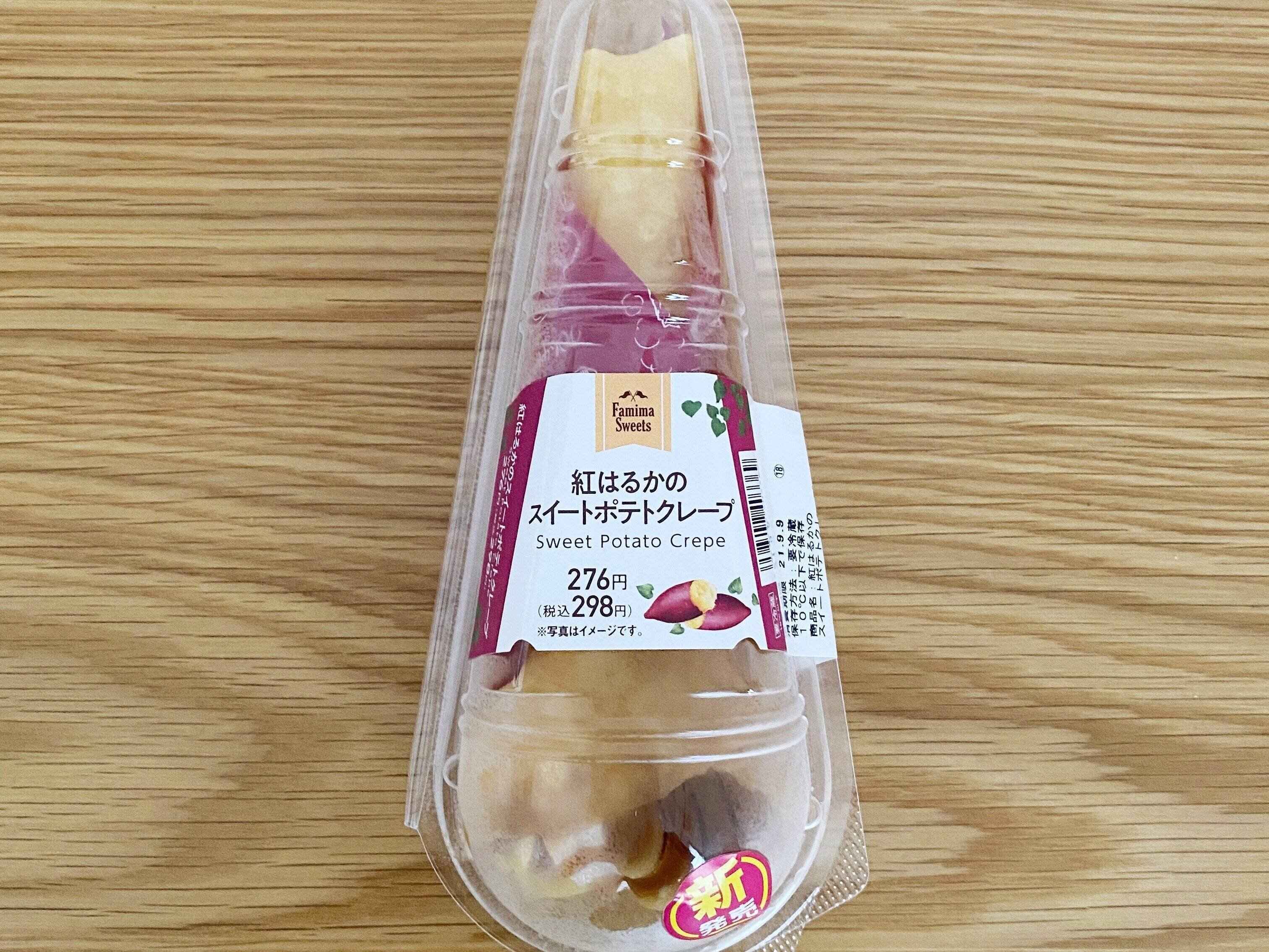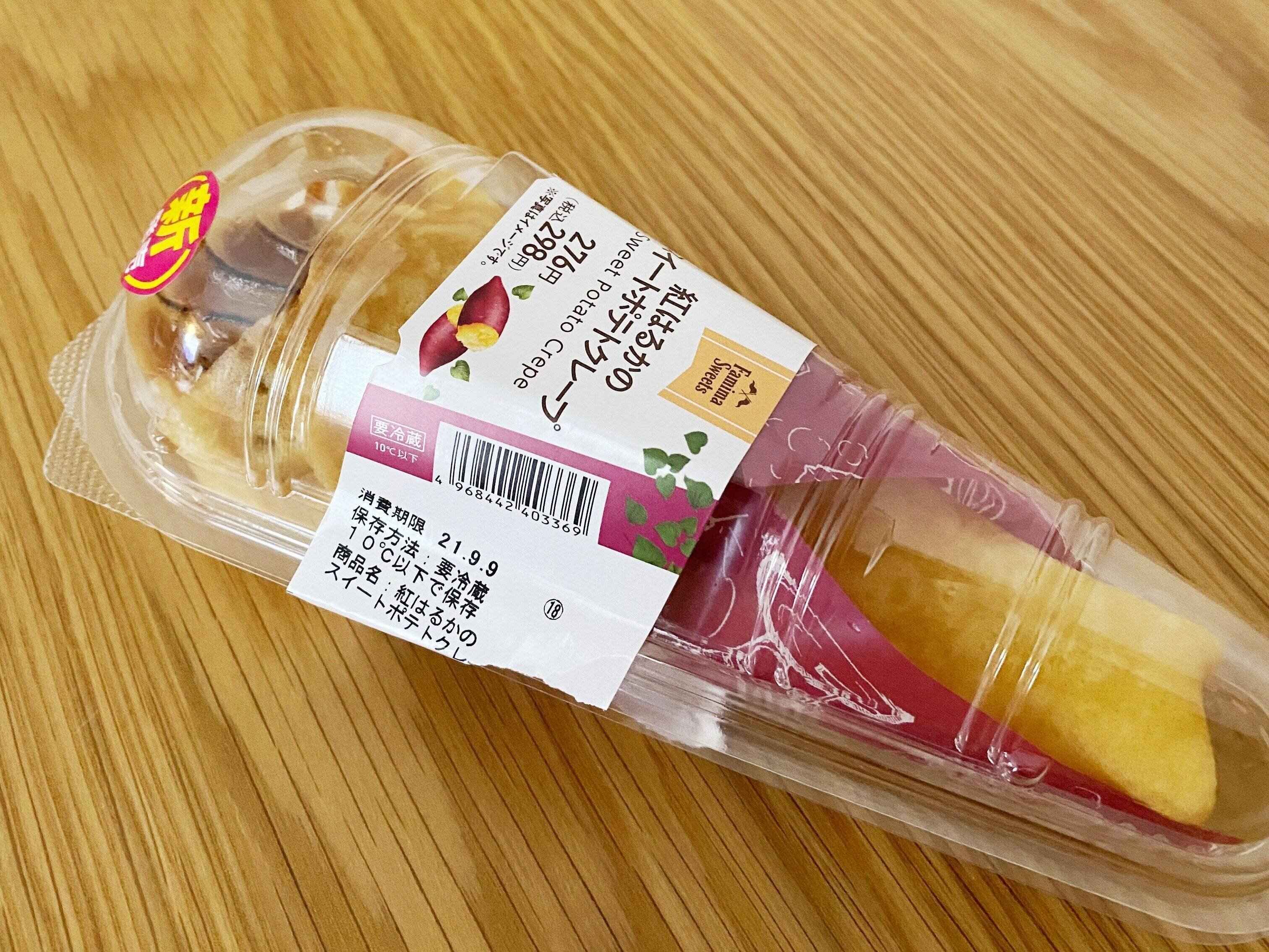 ファミリーマートから新商品の【紅はるかのスイートポテトクレープ】が登場。発売前から楽しみにしていた商品なので、発売日当日に買いに走りました〜!