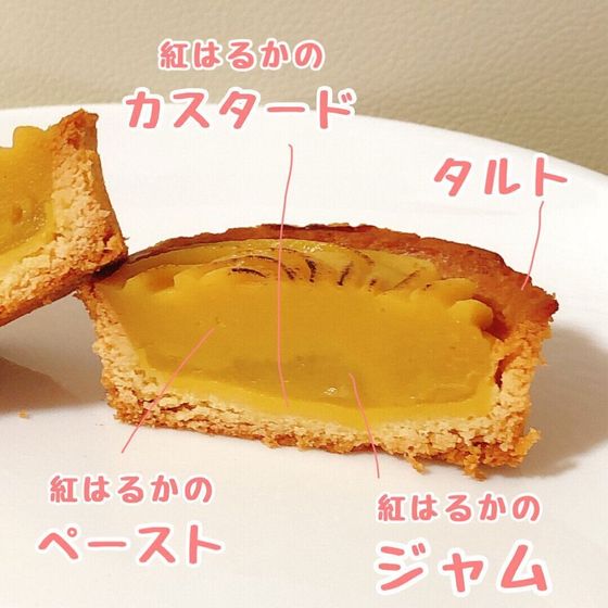 去年も出ていた季節の人気商品。今年は安納芋以上に糖度の高い紅はるかを使って登場です。しっとりソフトなタルトに、紅はるかを使ったペースト、ジャム、カスタードが重ねられています。(税込210円、199kcal)