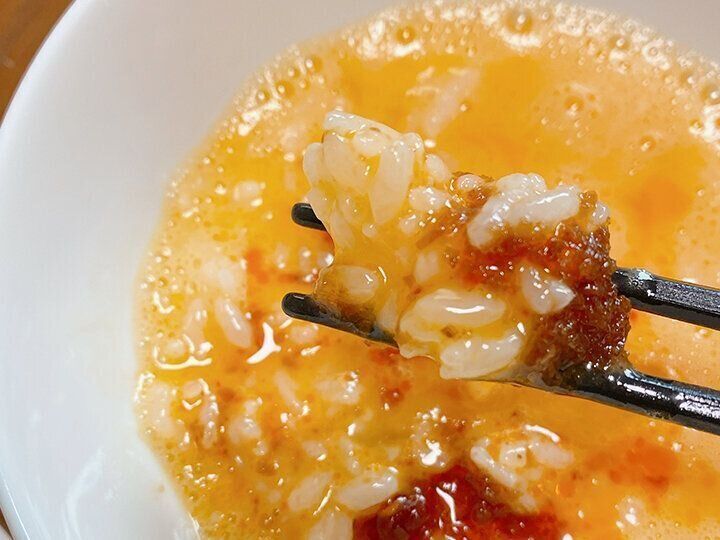 サテトムにカルディ「オマール海老めんつゆ」をちょいたしすると、海老の風味がすごい卵かけご飯が完成します!これはもう箸が止まらないので要注意です!