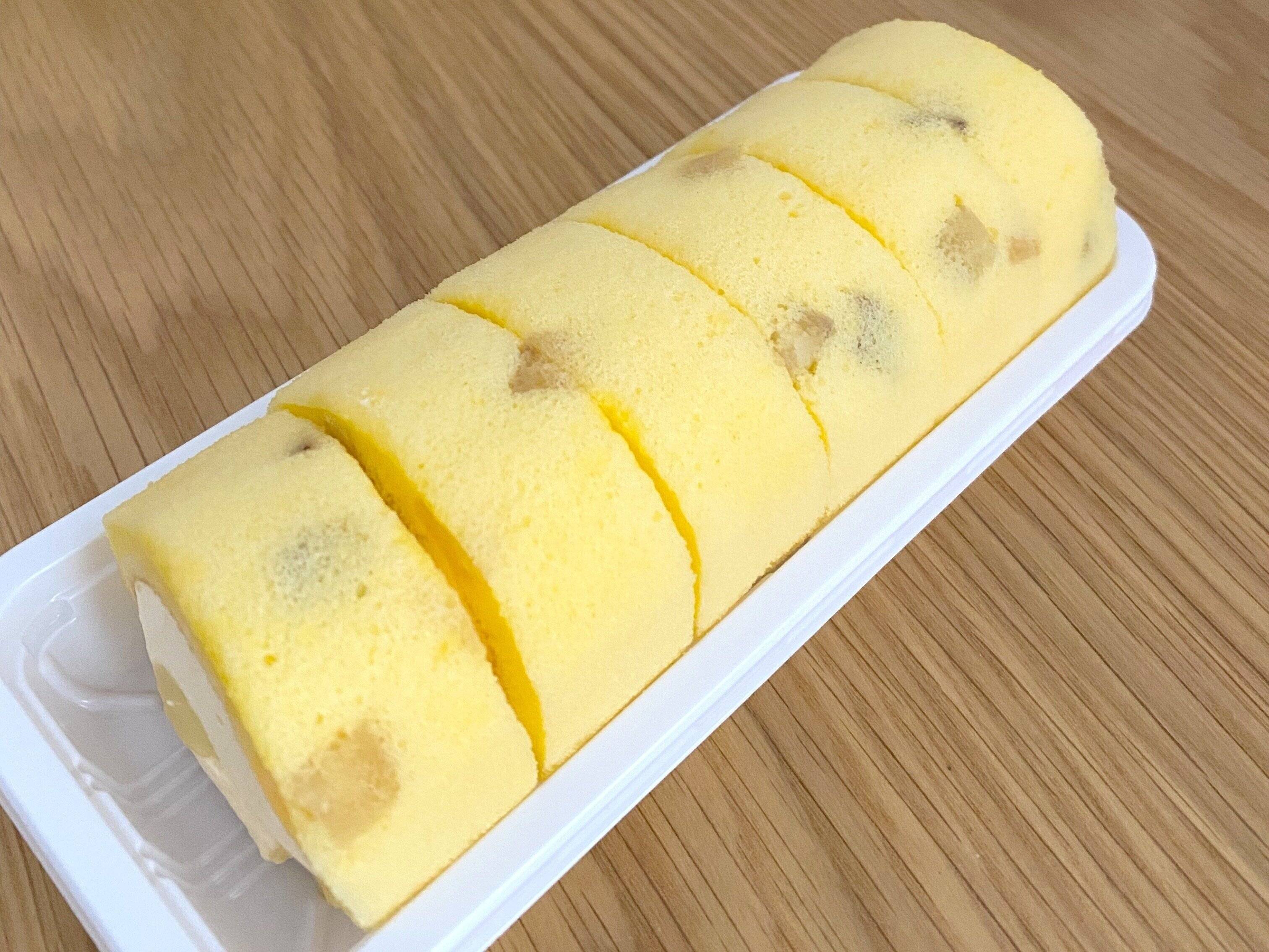 さつまいもダイスが入った芋風味の生地で、スイートポテト味のクリームとなると金時芋を使用した餡を包んだ、モチモチ食感のロールケーキです。
