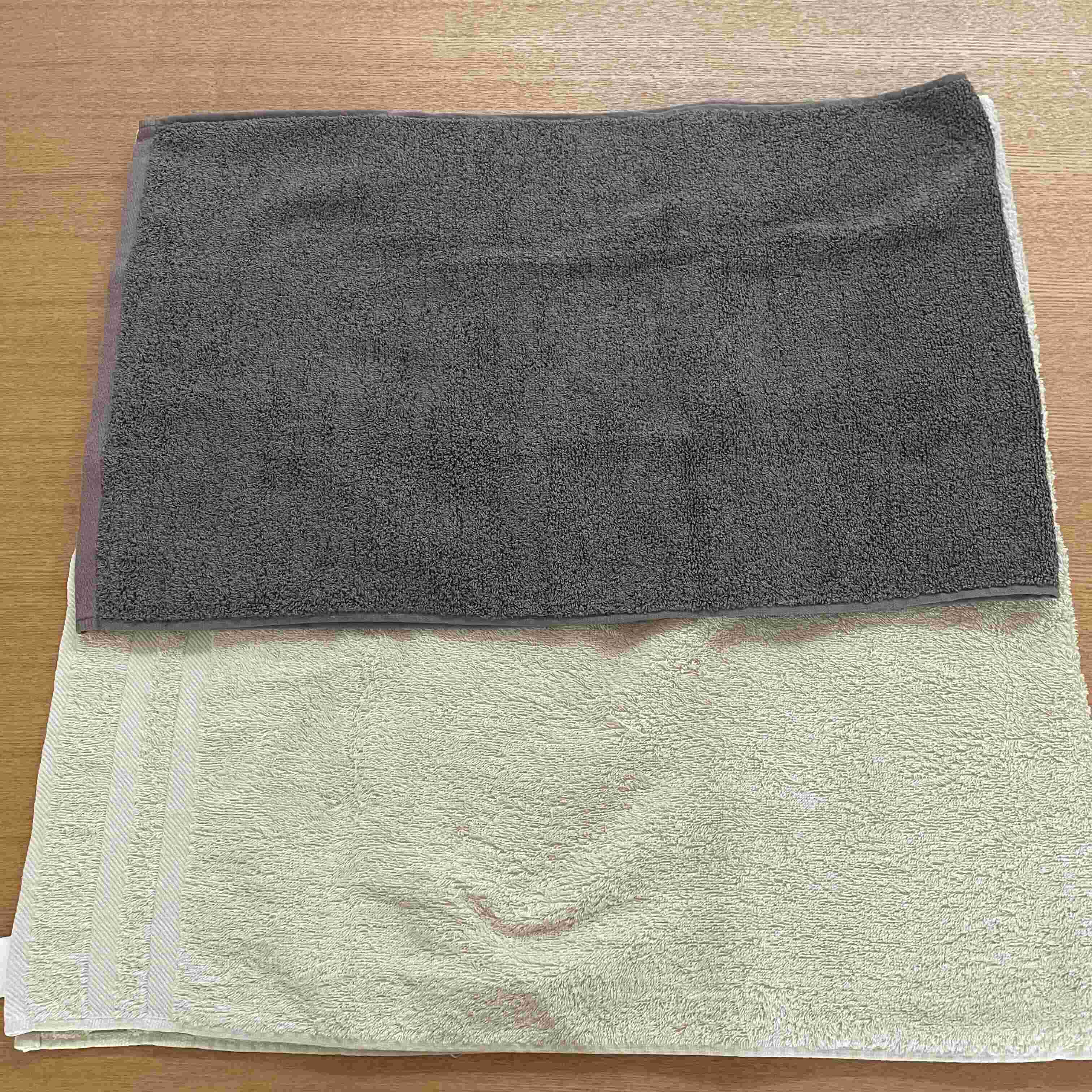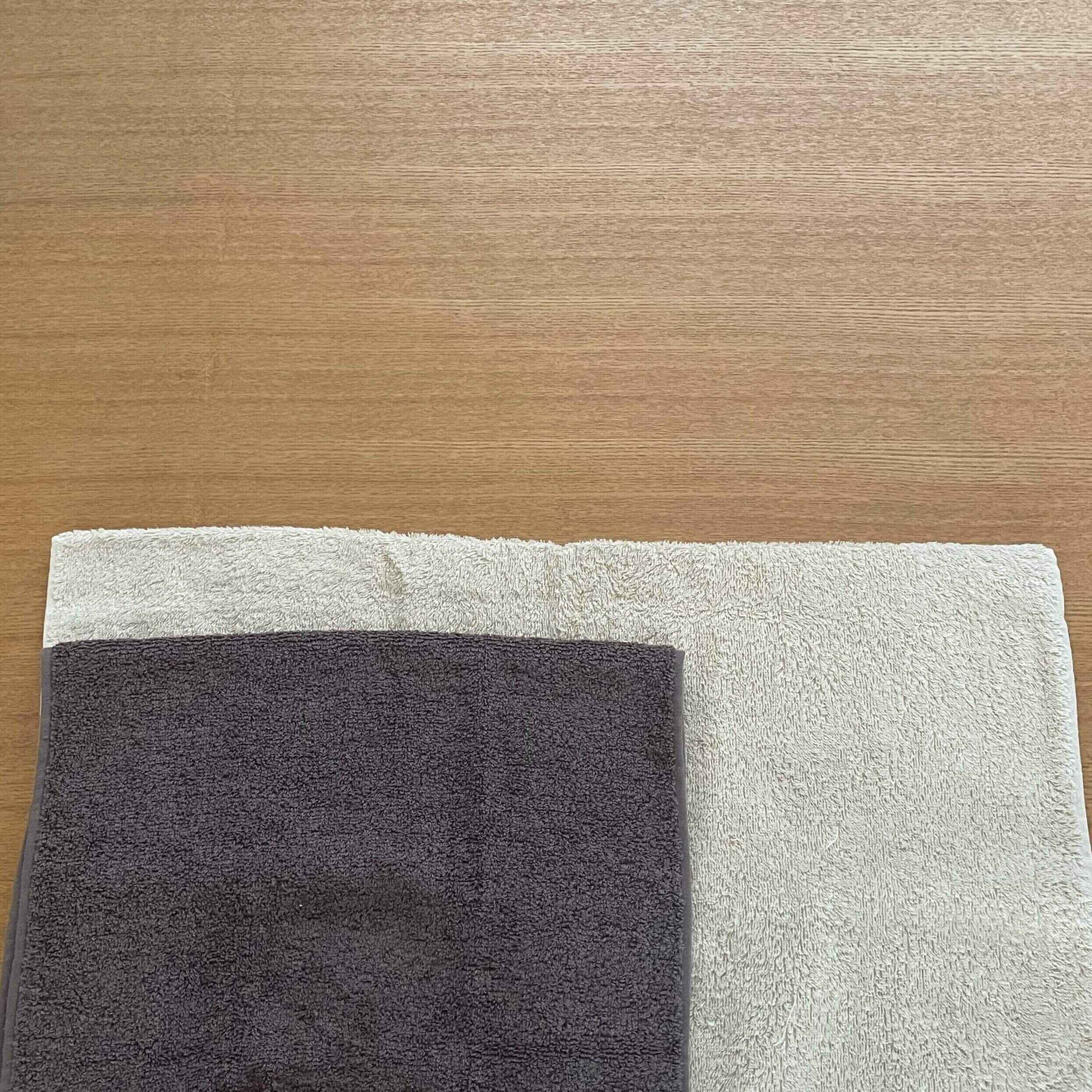 ベージュの方は今まで使っていたバスタオル。ブラウンの方が今回購入したスリムバスタオルですが、長さは今までのと同じです。