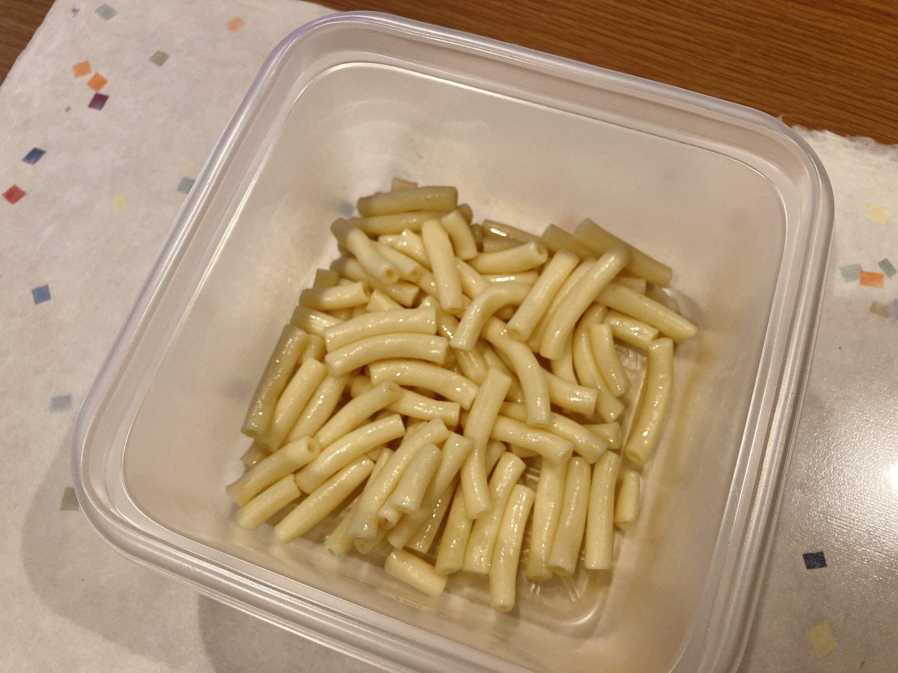 その「面倒」な気持ちを和らげてくれるのがこの「マカロニゆでときました」なのです。なんせ容器ひとつあればいいのですから。実際に作ってみたマカロニサラダも、普段のものと変わらず家族は平らげてくれました。