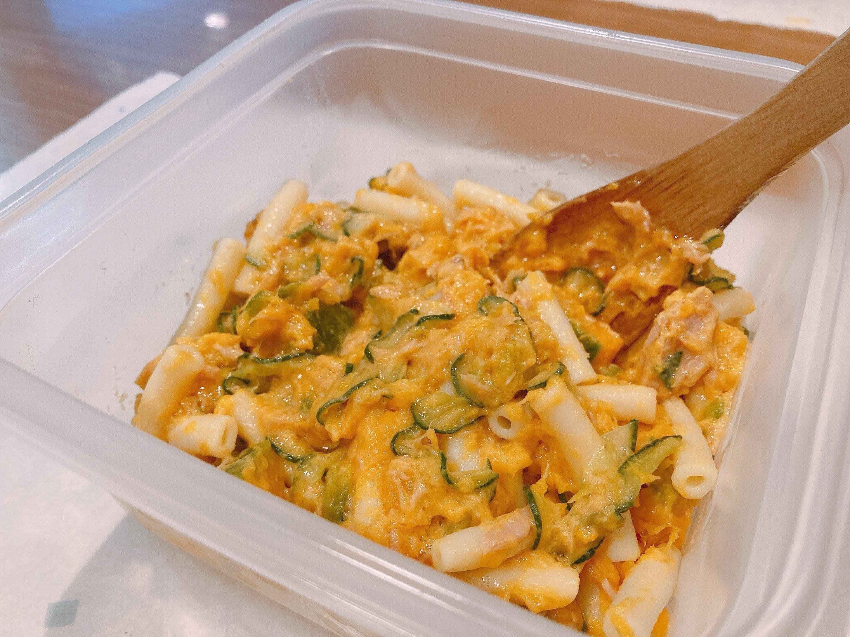 実はマカロニサラダを作ろうと、冷凍しておいたキュウリの塩揉みとかぼちゃペースト、ツナは元々準備していたのです。あとはマカロニを茹でるだけだったのですが、このお湯を沸かしてザルにあげるという行為が実はものすごく面倒臭い。