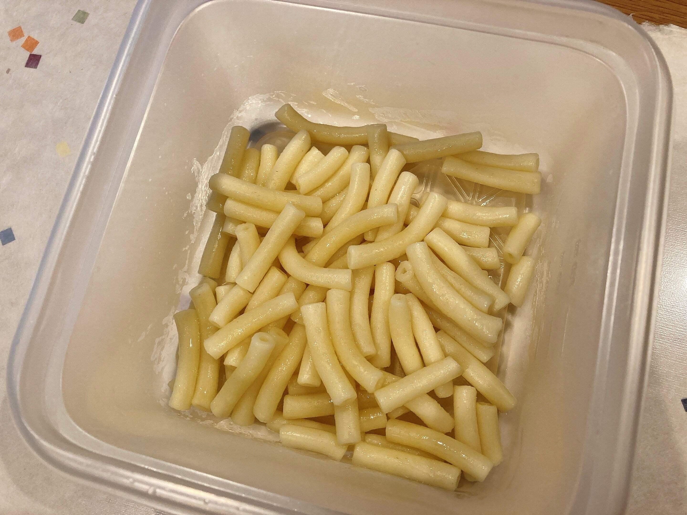 1分加熱したマカロニがこちら。加熱前と比べてふっくらとし、もちっとした食感になりました。