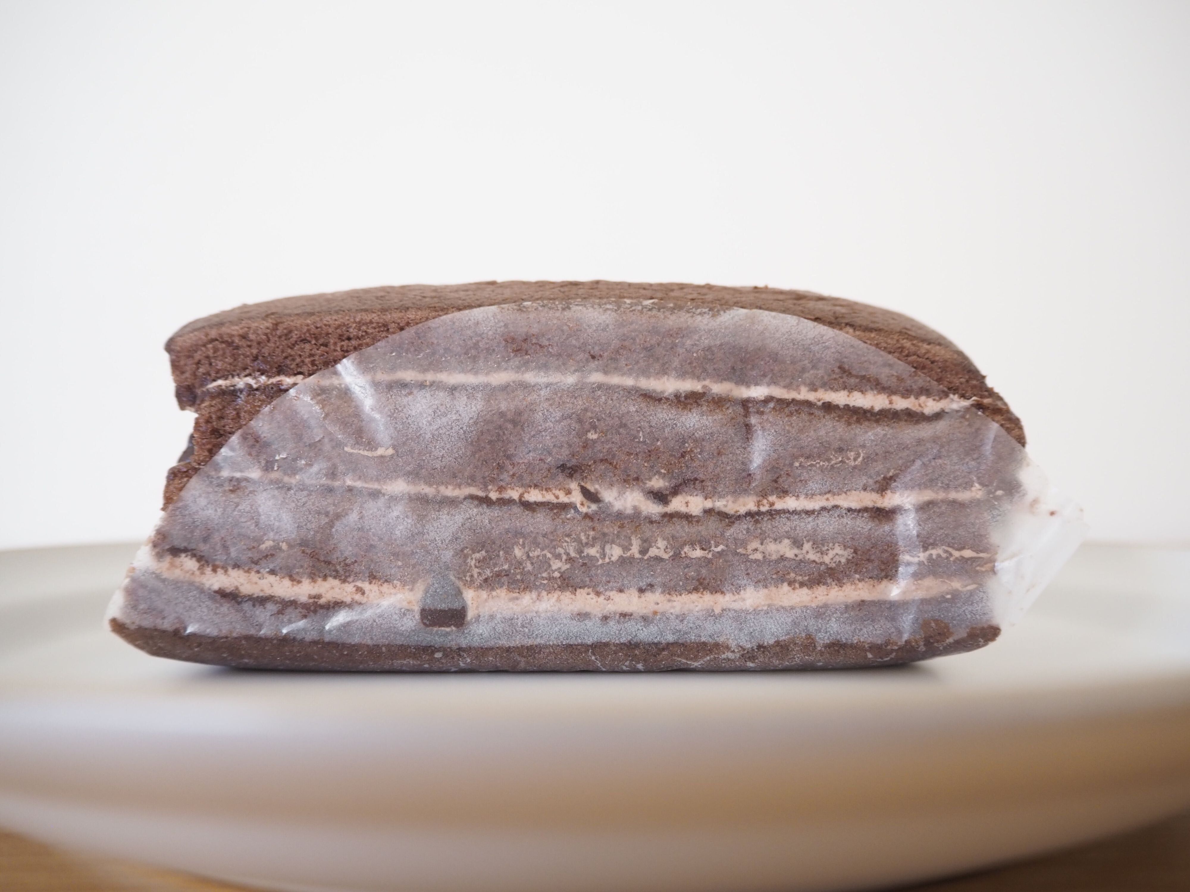 こちらが「ショコラケーキサンド(ベルギーチョコ入りクリーム)」で、価格は170円(税込)。パッケージに記載されている名称は洋菓子になっていますが、パンコーナーにありました。
