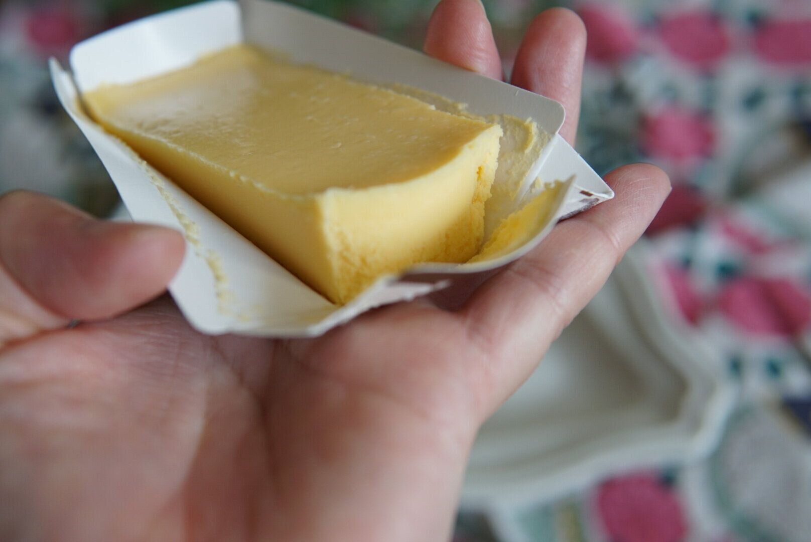 見た目は、ベーシックなチーズケーキ。特徴が少ないスイーツって美味しかったとしてもレビューを書くのが難しいんだよなーと思いながらも、表面がプリンみたいなそそられる美しい黄色だったのに惹かれて購入してみました。