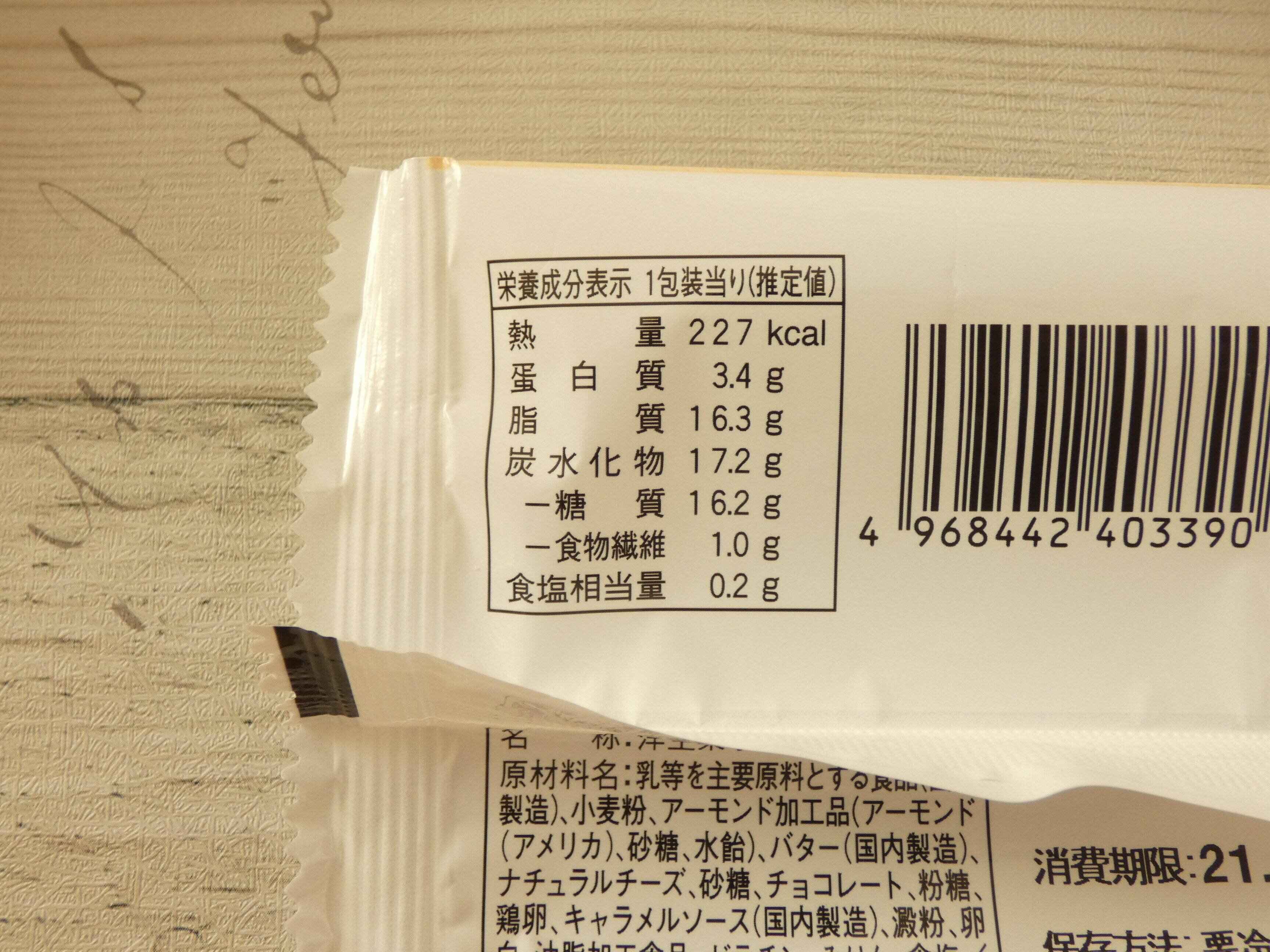 栄養成分表示を見ると1個のエネルギーは227kcalです。