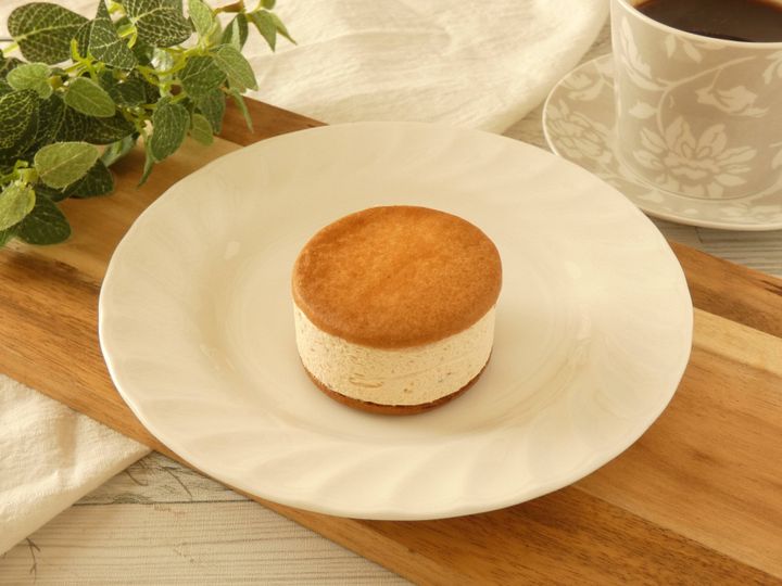 手のひらサイズのスイーツで、こんがりと焼いたビスケットにアーモンド入りのキャラメルバターチーズクリームがたっぷり入っています。