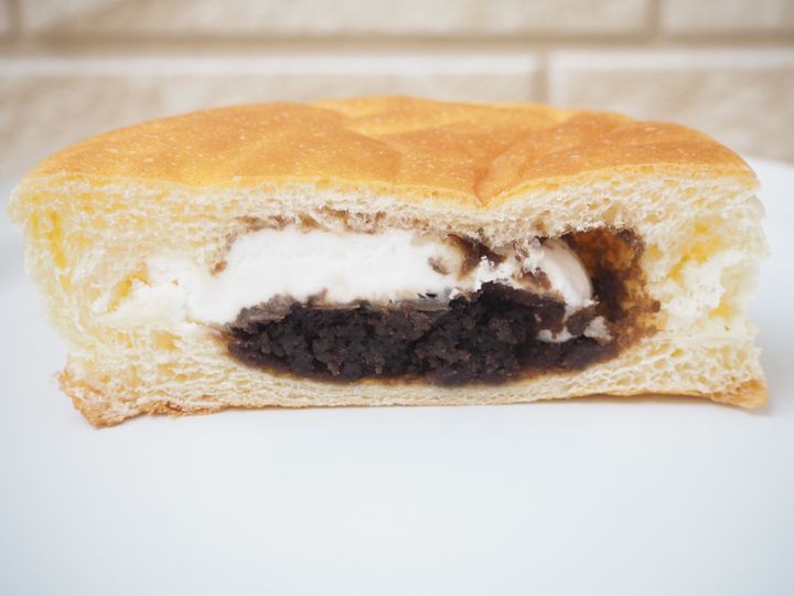 パンと中身のすべてが合わさると、ダイドーブレンドコーヒーを飲んだ後にパンをかじったような風味に。ホイップクリームがコーヒーをまろやかにするミルクのような役割を果たし、苦みと甘みの調和がとれて美味しい……!