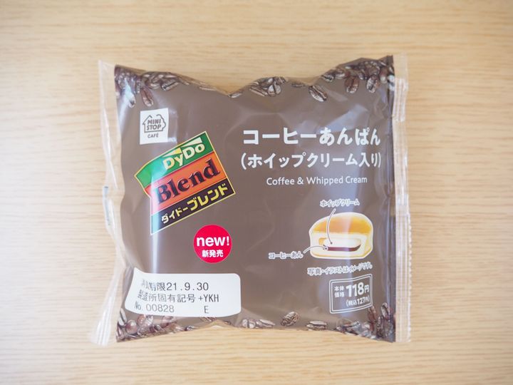 パッケージもダイドーブレンドコーヒー仕様になっている菓子パンです。価格は127円(税込)で、消費期限は購入日を含む3日程度のようです。