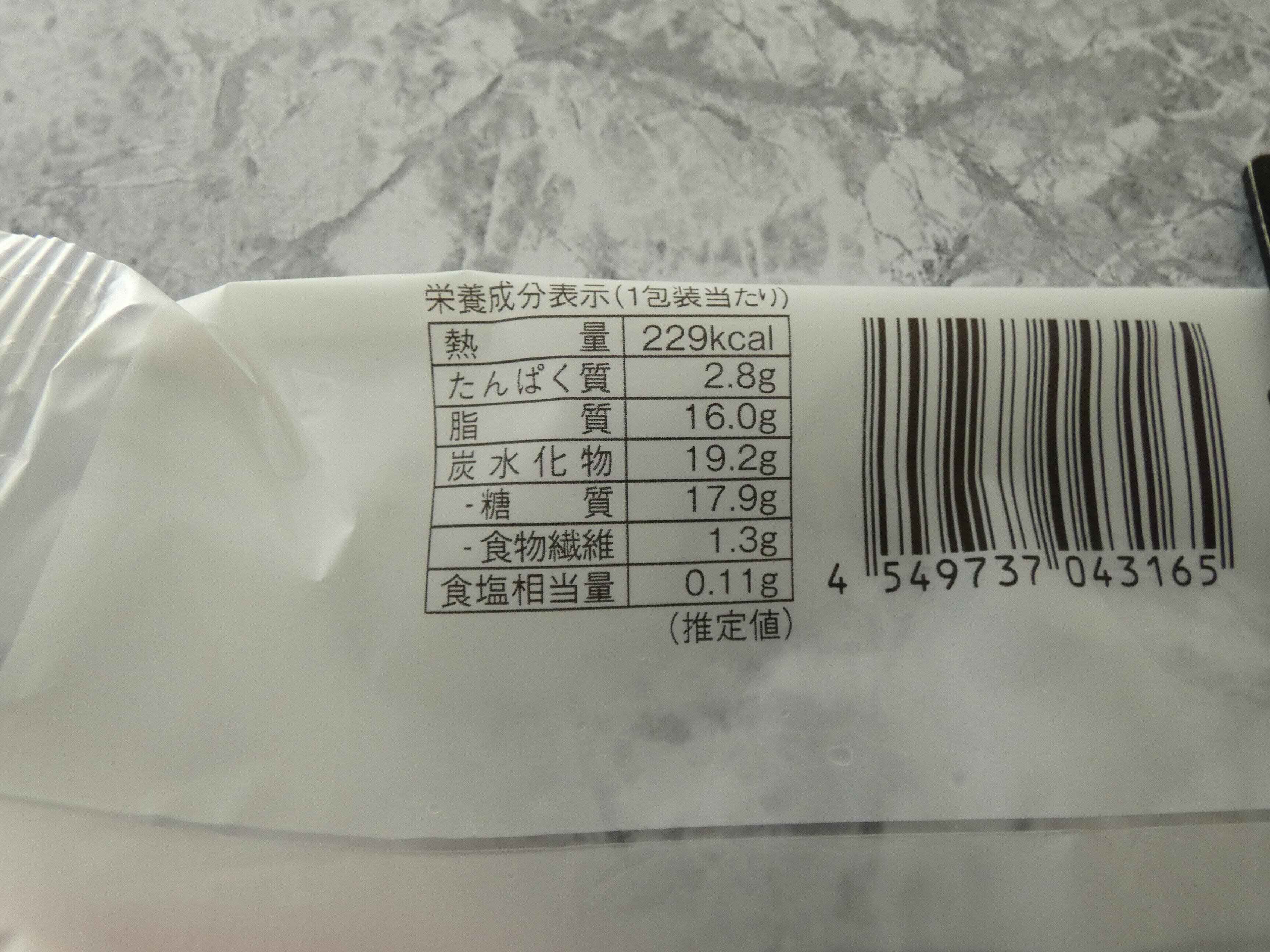 栄養成分表示を見ると1個のエネルギーは229kcal。