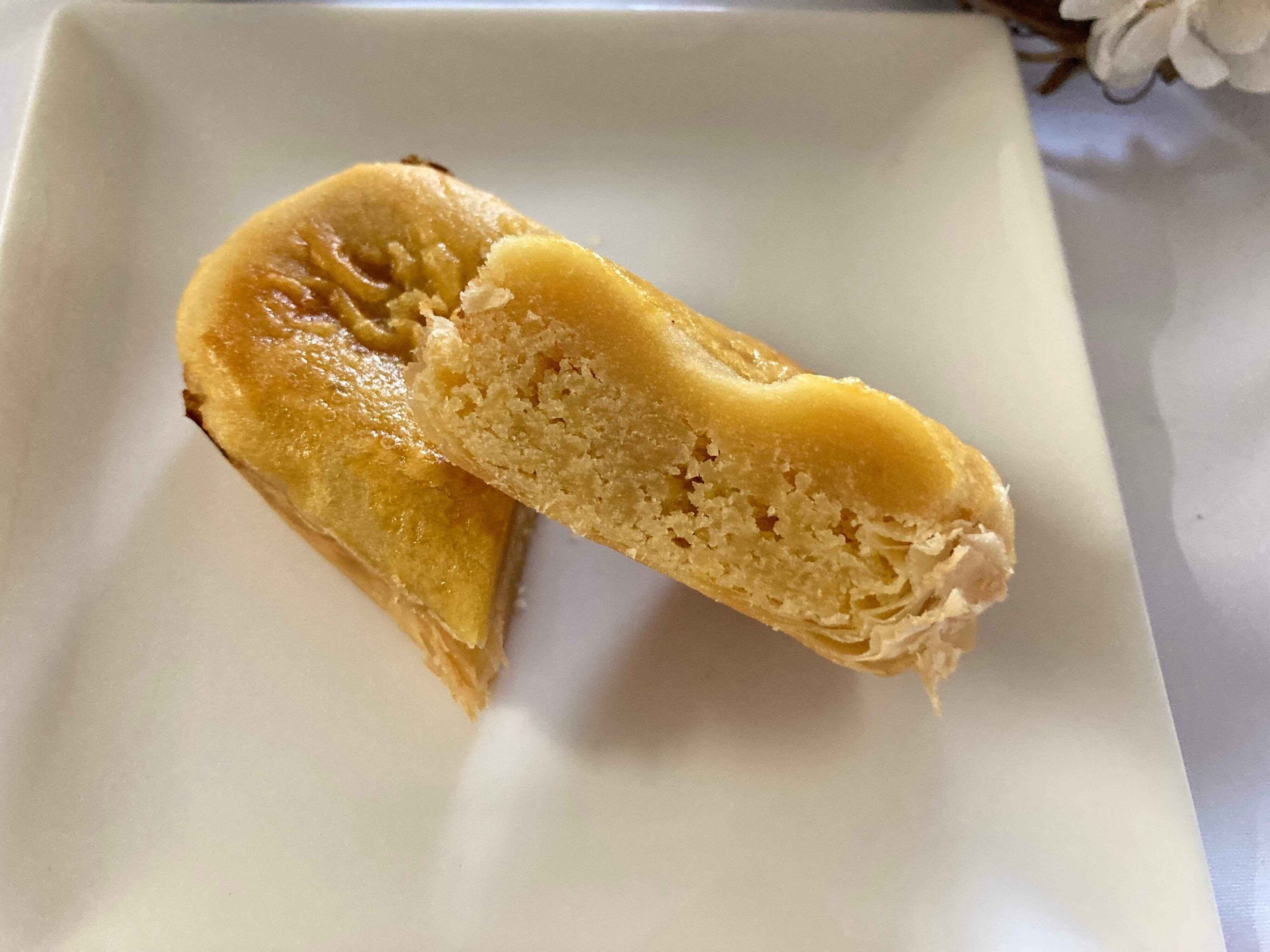 半分にカットしてみると、パイの上にスイートポテト生地が合わさっているのが分かります。