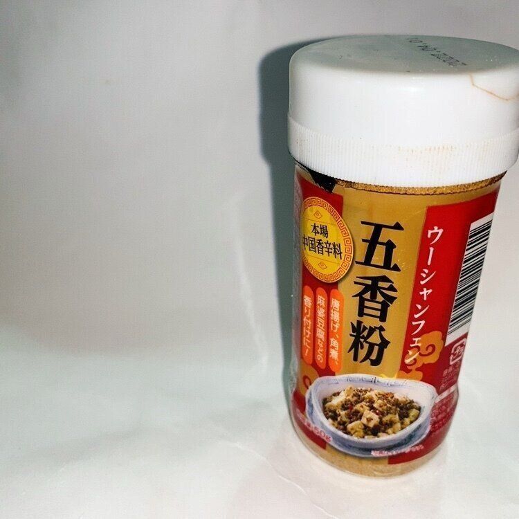 名前どおり5個のスパイスが入った調味料なんですが、業務スーパーの「五香粉」は6種類のスパイスが入っています。