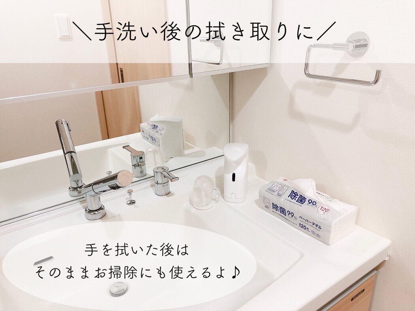 手を拭いたペーパータオルで、ササっとお掃除しちゃうのもいいかもしれませんね。拭くだけで除菌もできるので一石二鳥です。