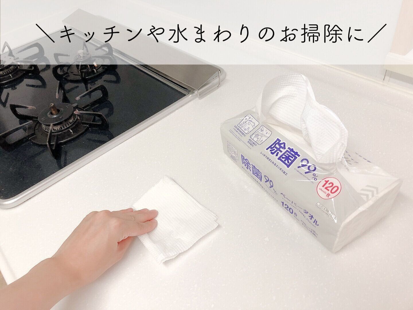 そんなときに、普通のペーパータオルではなく、この「除菌ペーパータオル」を使うのがおすすめ!