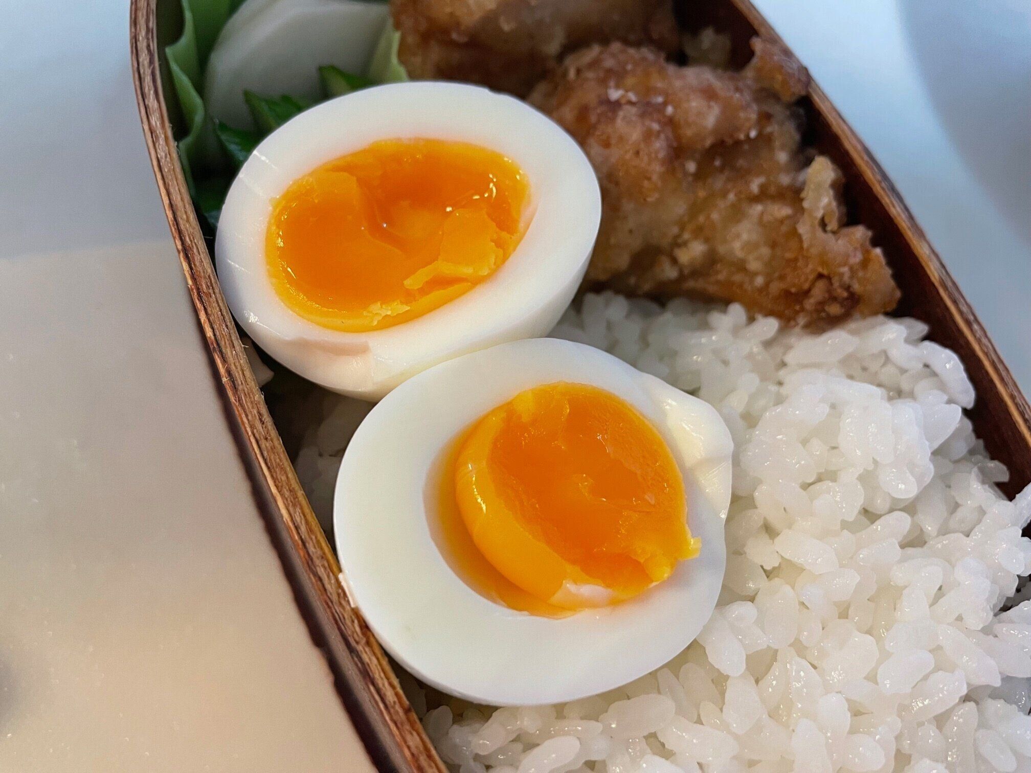 割ってみると、ちょうどいい半熟状態でした!これでタイマーをかけ忘れたときでも、一目でゆで具合がわかりますね。