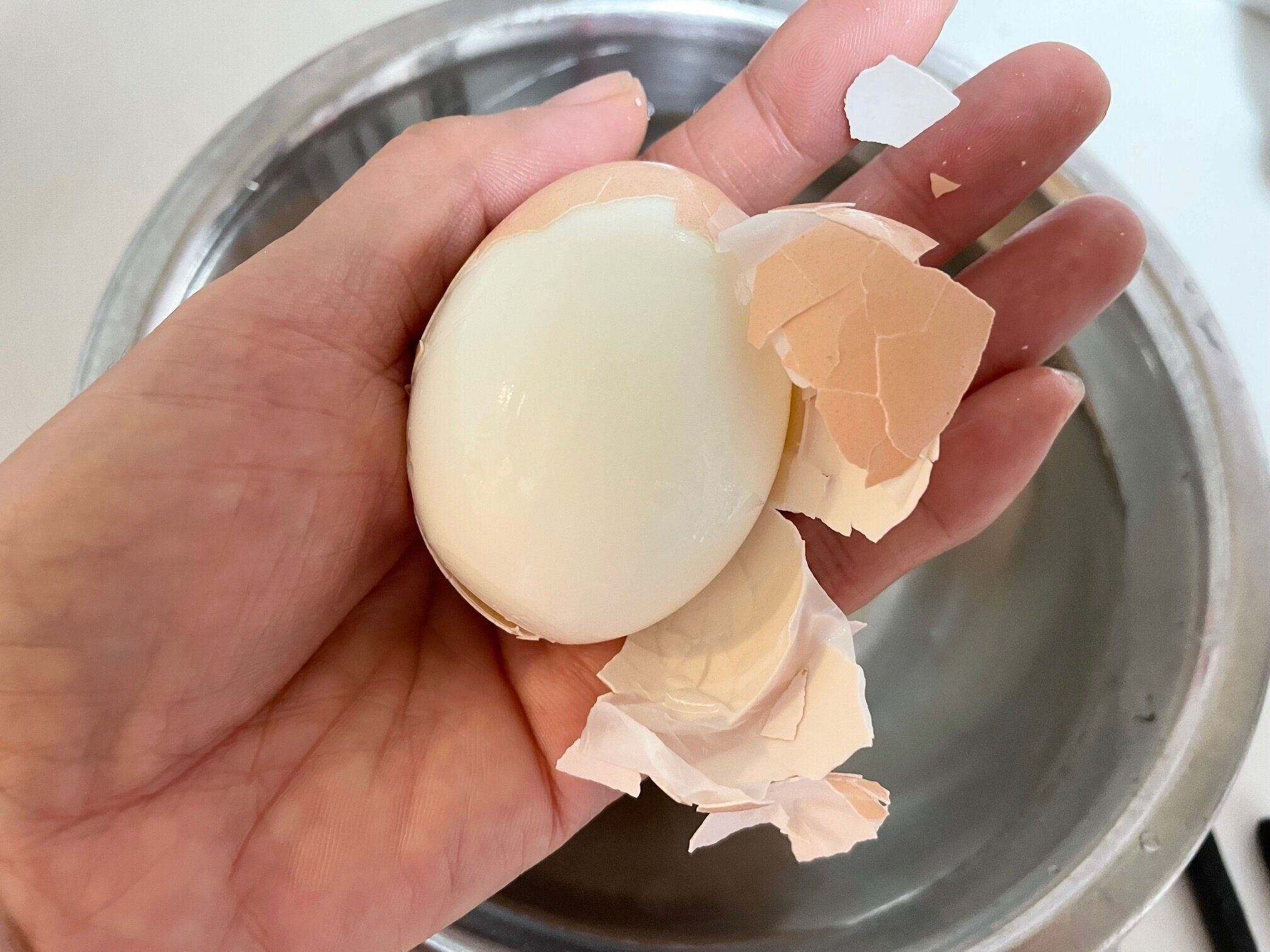 おお!つるんと剥けました!これはいい!ゆで卵がキレイに剥けずに白身がくっついてくるのって結構イライラしますよね。110円でこれが解消できるなんて、どうして今まで買わなかったのか!