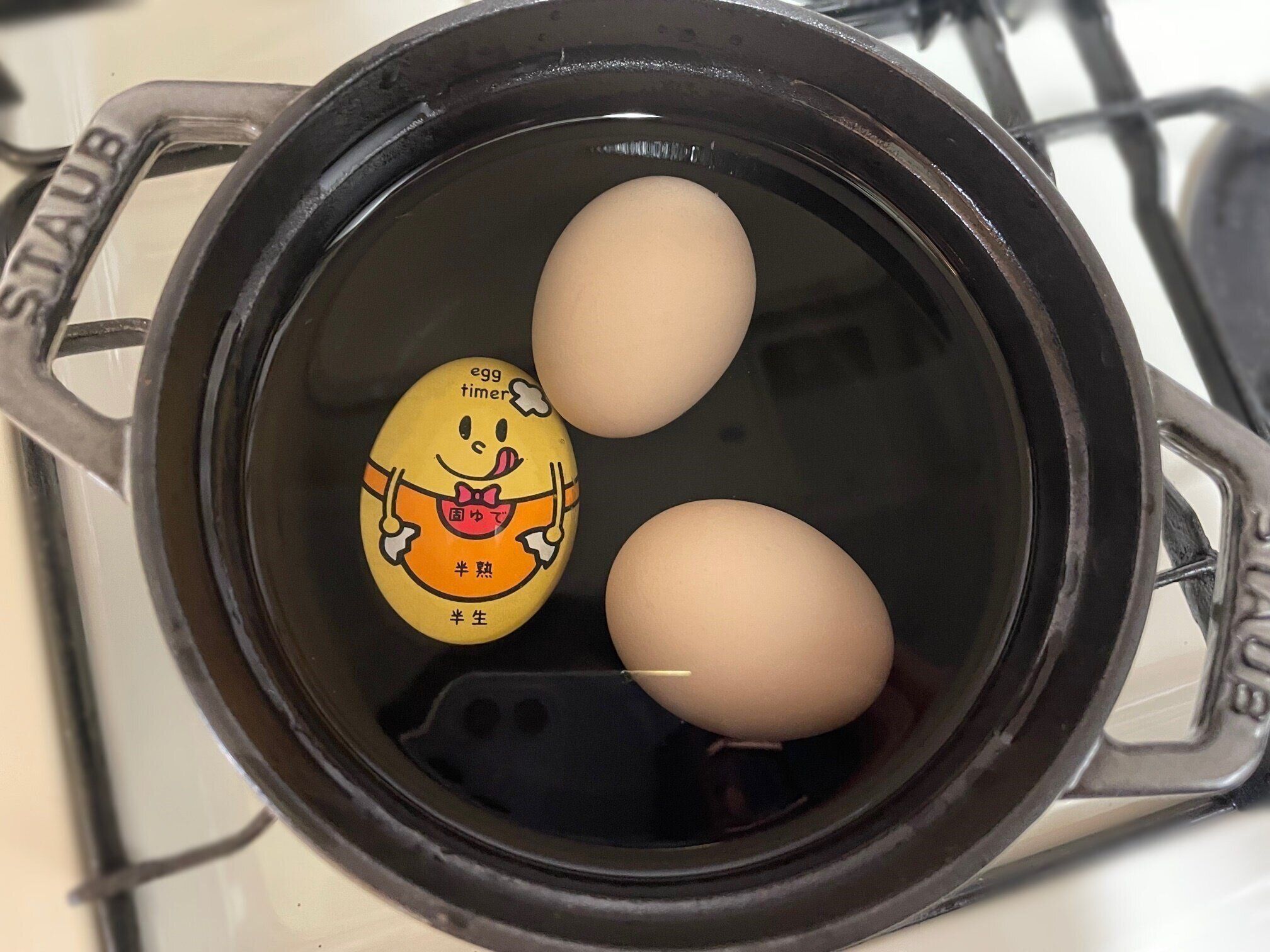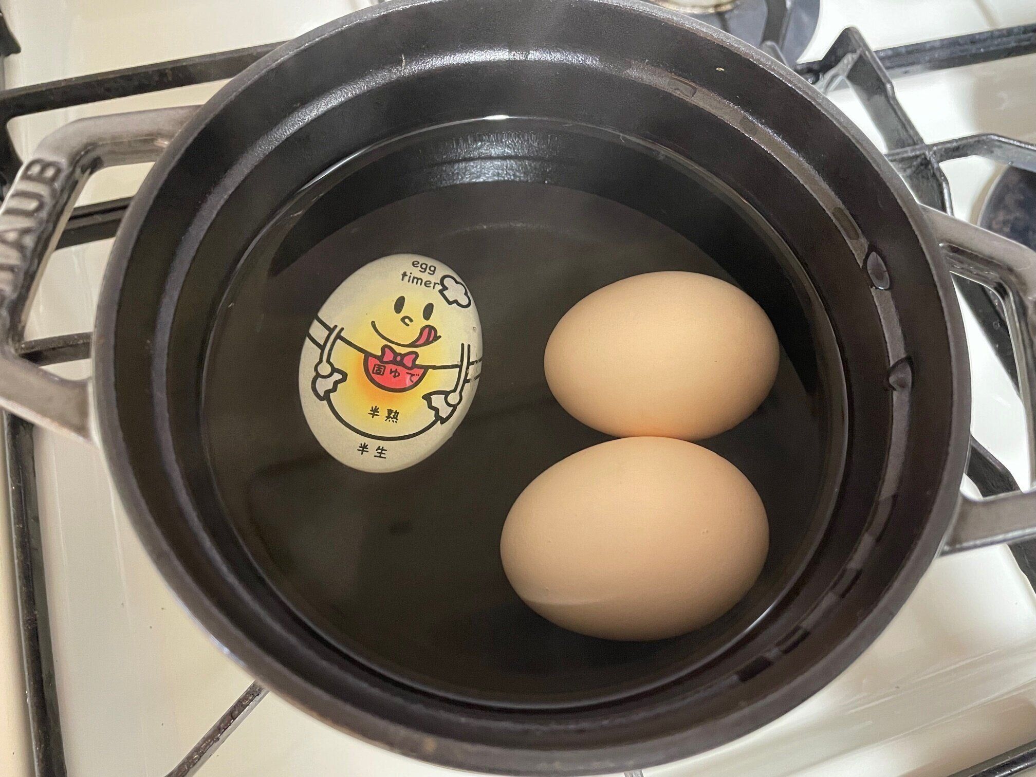 「あ!タイマーかけ忘れた!」ということが何度あったことか。さっそく卵と一緒にゆでてみます。