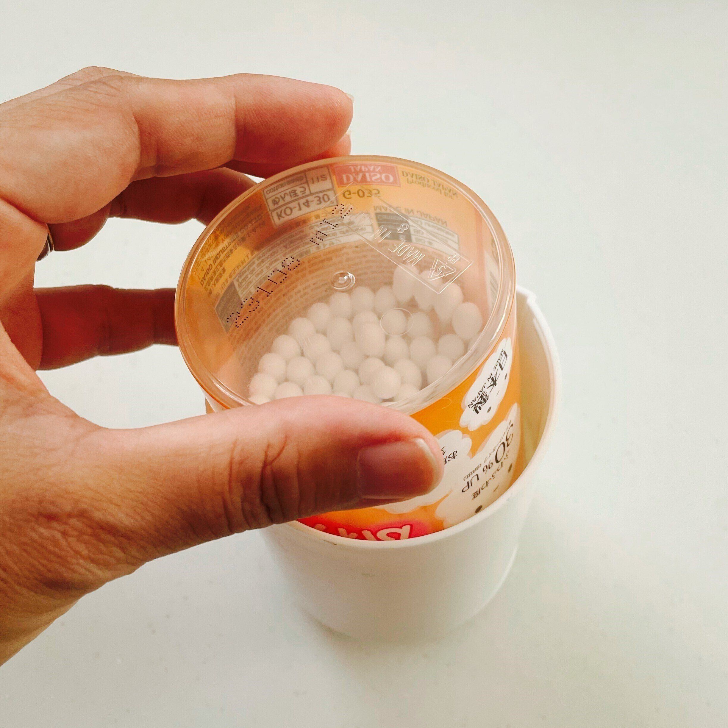 実は同じような太めの綿棒は他にもあるんです。別の綿棒の方が本数も多くてコスパが良いのですが、詰め替える時にこのようにひっくり返して入れることが出来ず、綿棒を掴んで詰め替える作業が発生!