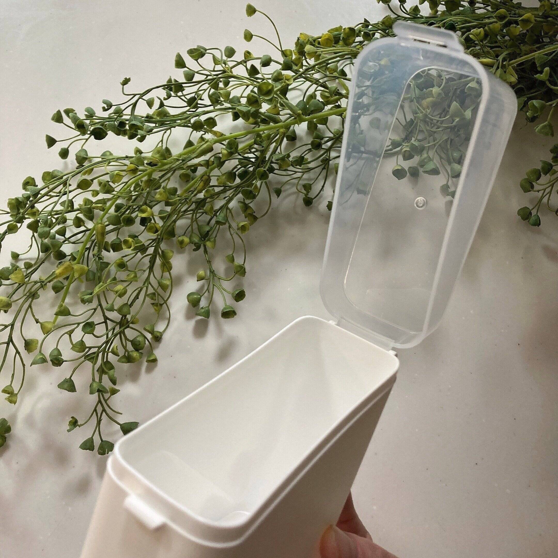 シンプルなデザインでホワイト。見た目にも清潔感があり冷蔵庫収納におすすめ。フタ部分が半透明で、残り枚数が確認しやすい点も優れています。