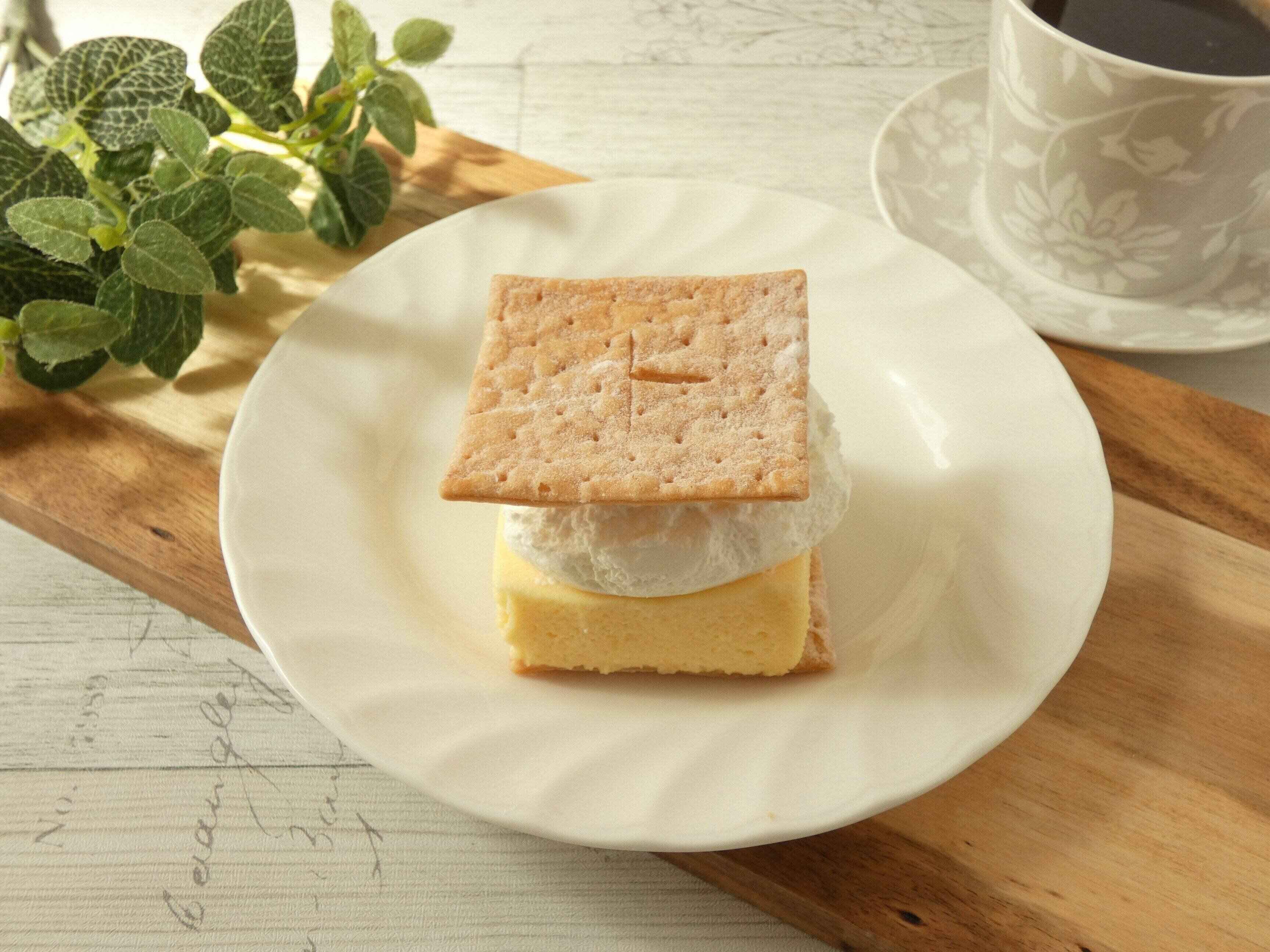 しっかりとした厚みがあるカスタードとたっぷりのホイップクリームを、四角いパイでサンドしてあります。