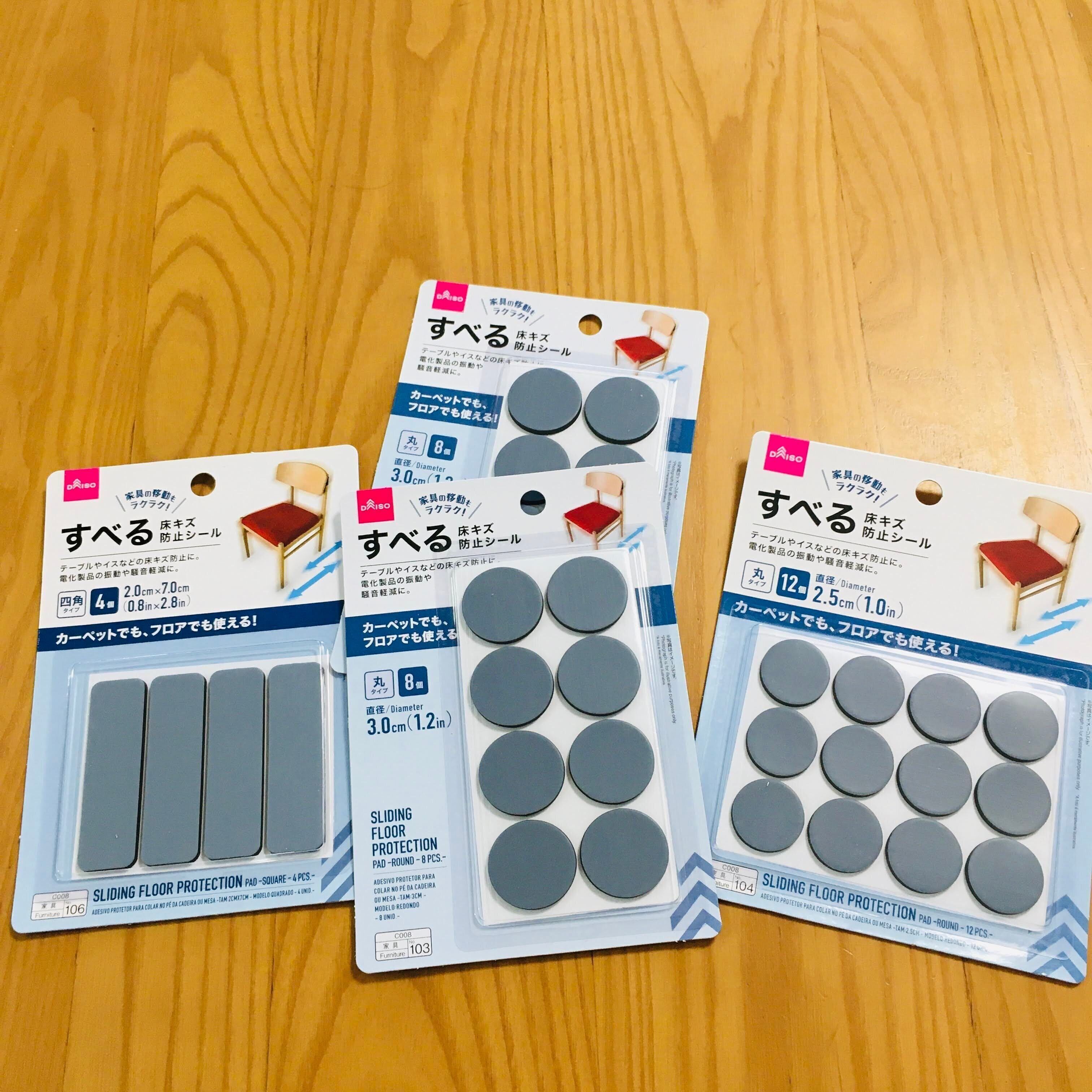 ダイソーで見つけた「すべる床キズ防止シール」です。