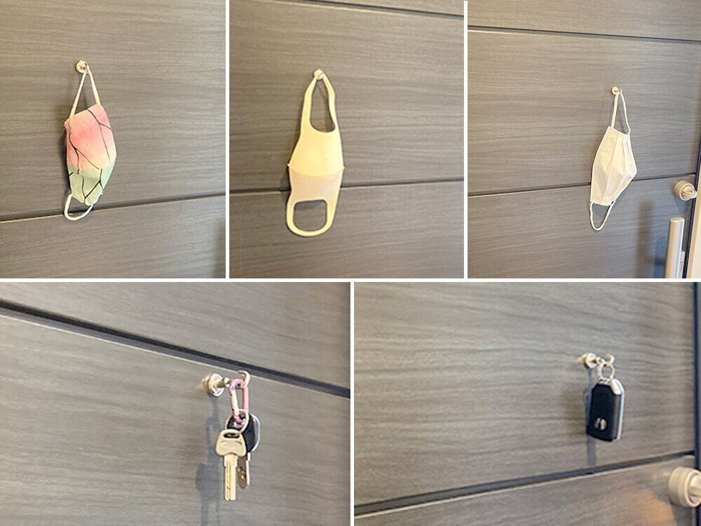 もちろんマスク以外にも家の鍵や車の鍵など、外出時に必要な小物類をかけておいても便利です。