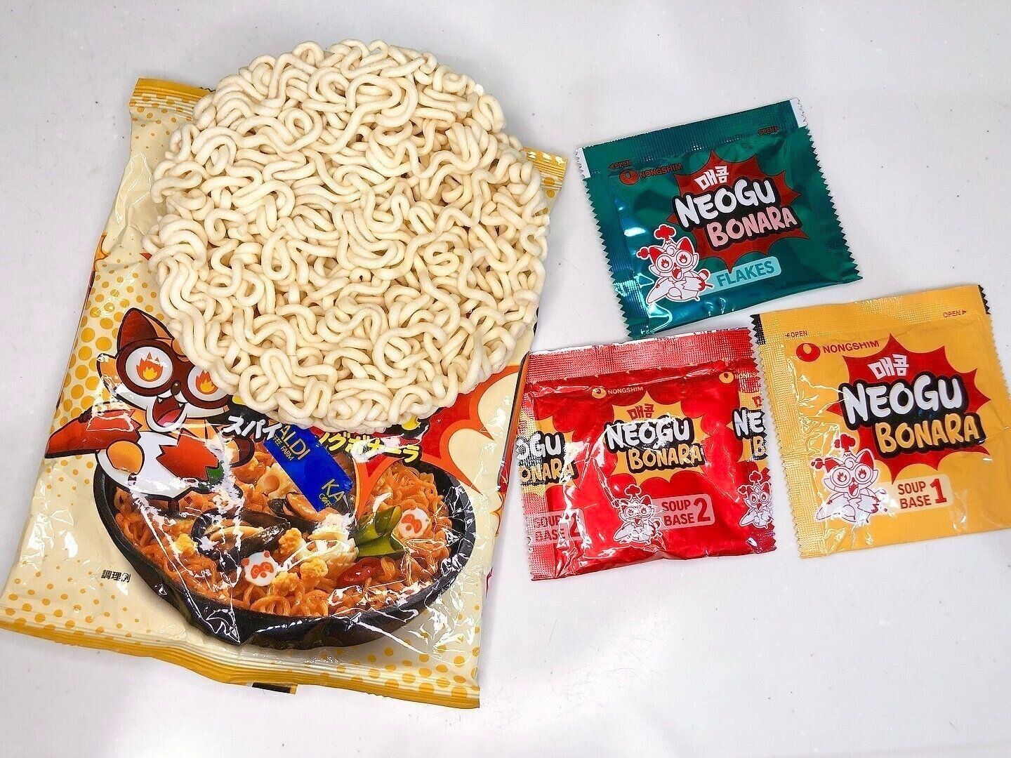 ノグボナーラ同様カルボナーラ味で通常のブルダック麺よりはマイルドです!