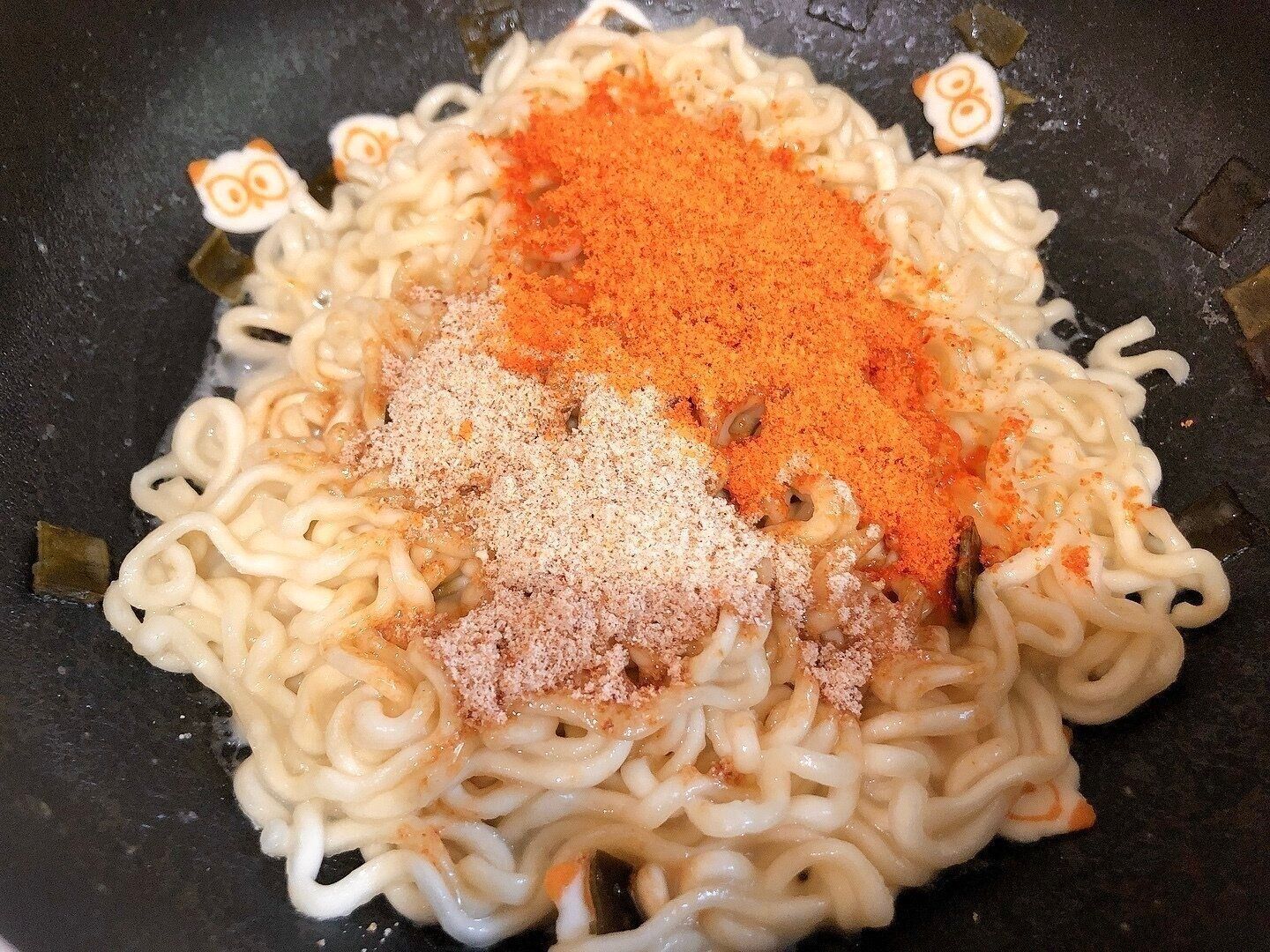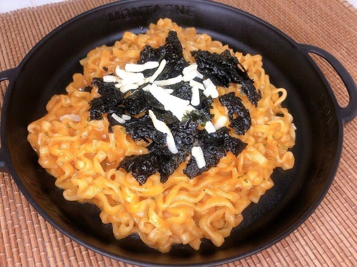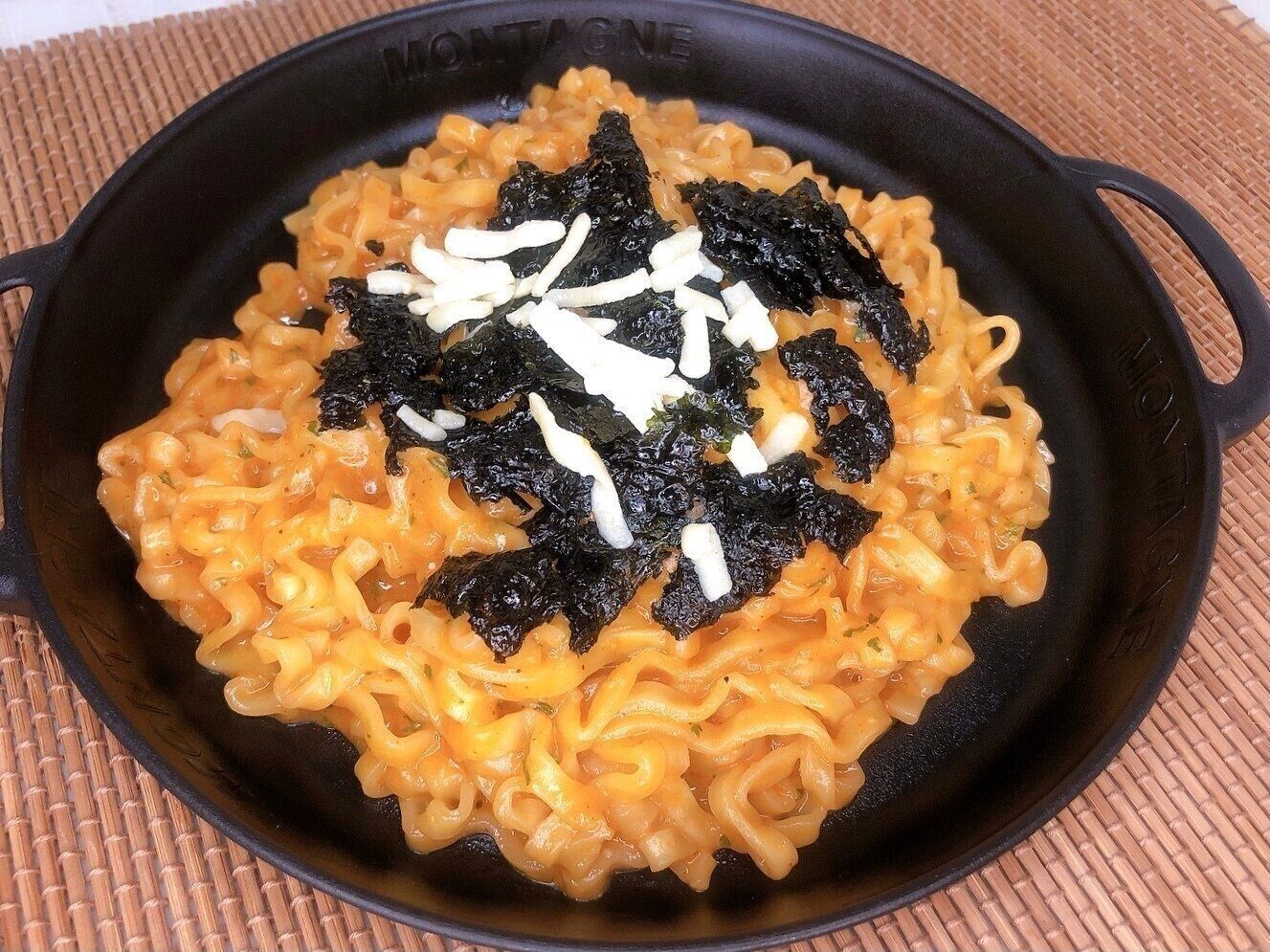 カルボブルダックには韓国海苔プラスとろけるチーズをトッピングします。