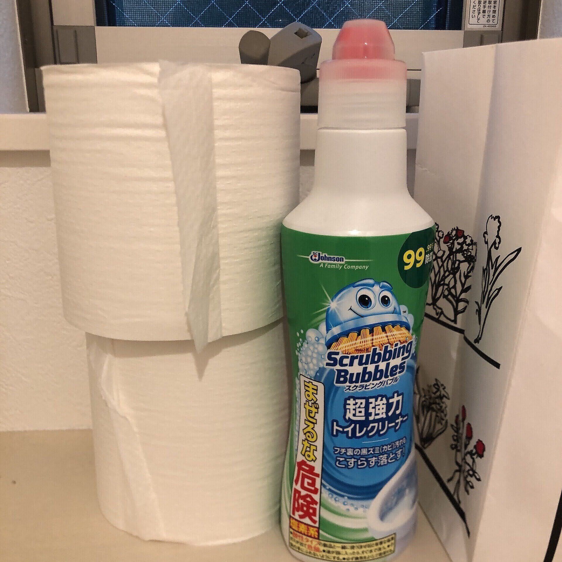 わが家のトイレ掃除を画期的にラクにしてくれたのが、スクラビングバブルの超強力トイレクリーナー。本当にただ液体をかけるだけで、便器をキレイ真っ白にしてくれます。