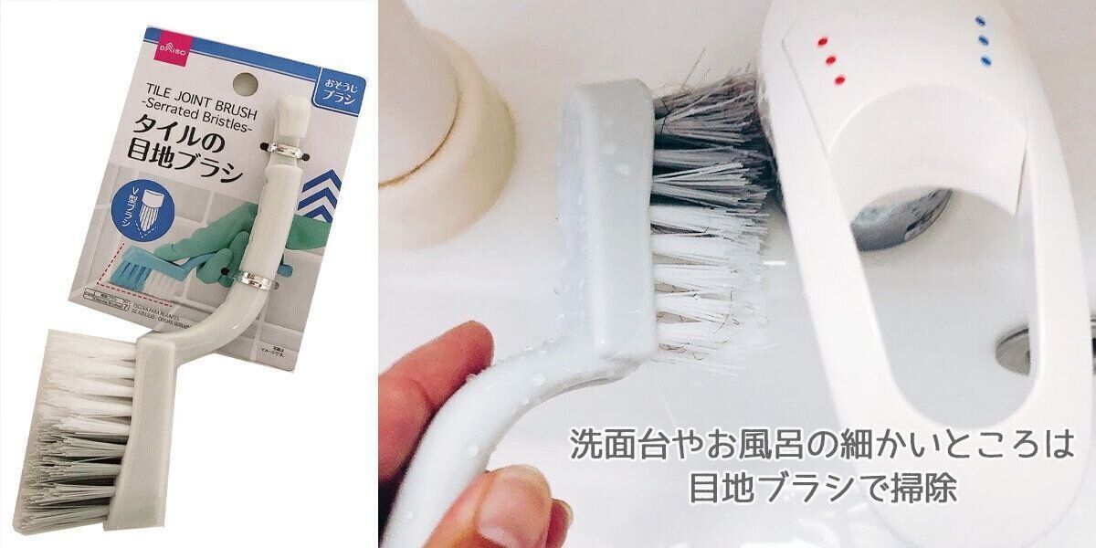 最初は別の目地ブラシを使っていたのですが、ダイソーで同じようなものを見つけてこちらに変えました。100円で買えるなんて、ありがたい!
