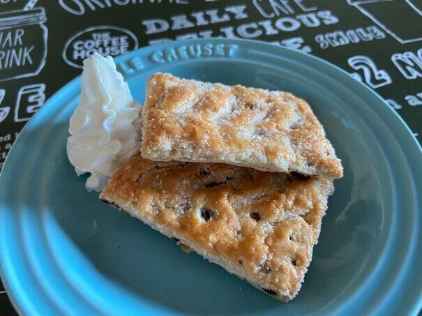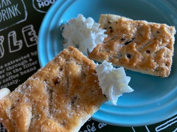 ザクザク食感のパイは意外にも甘さ控えめでくどくなくとってもおいしい!レーズンがごろごろ入ってあまずっぱさがアクセントに。
