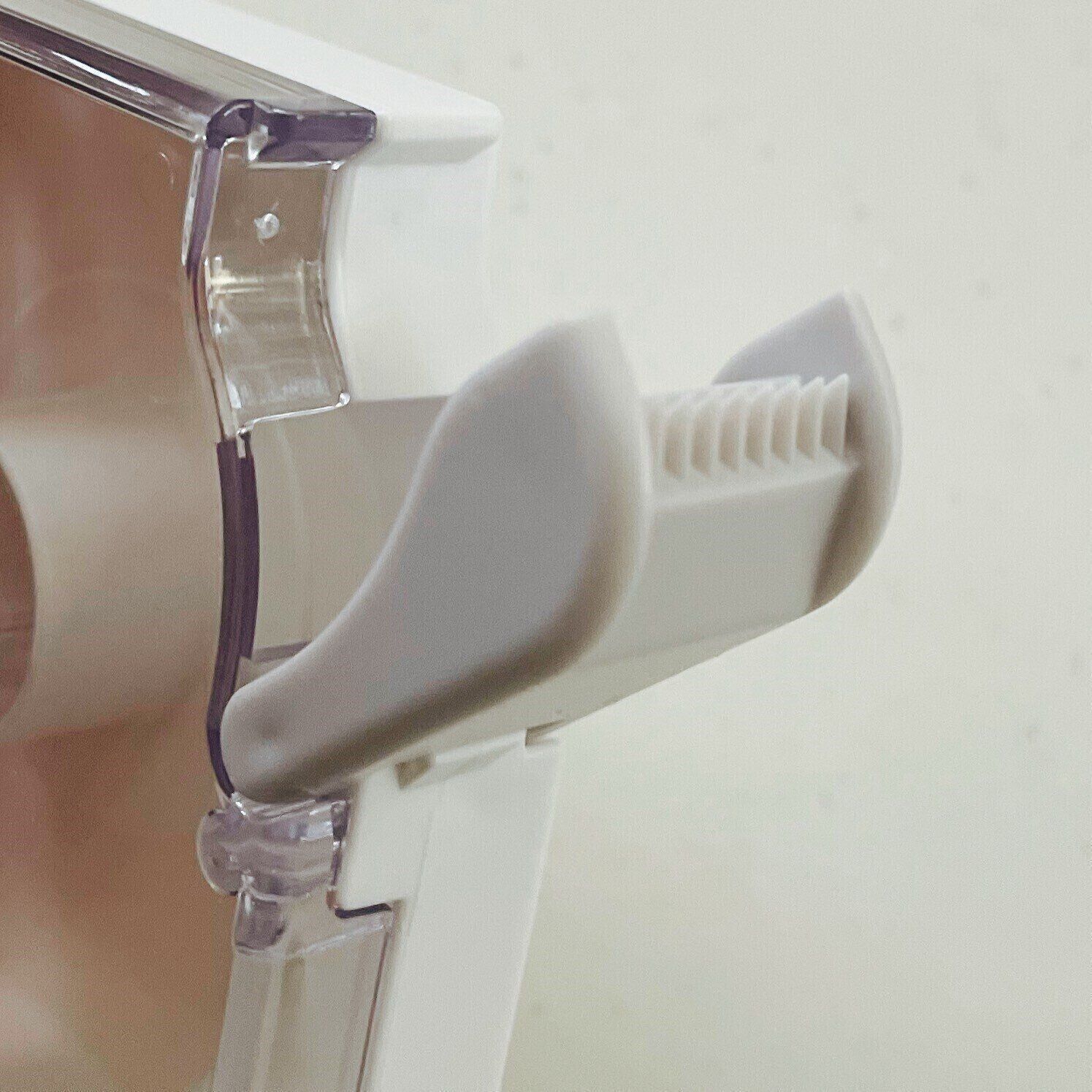 グレーの部分はテープを切るカッター部分で、使わないときはこのように閉じることでケガをする心配もなくスクエア型をキープできますよ。