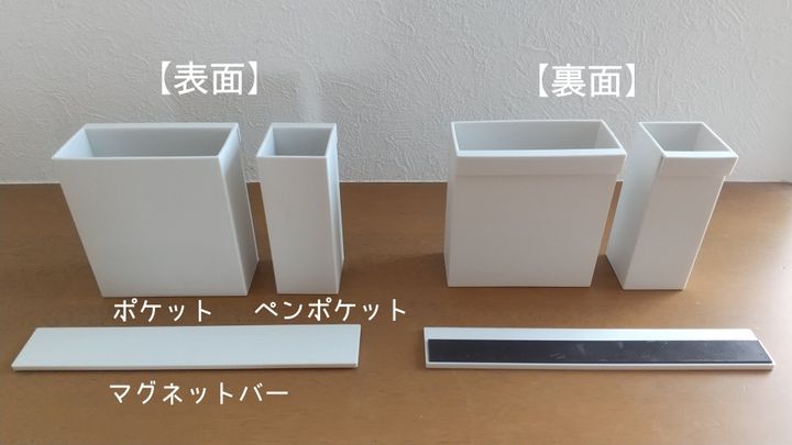 まずご紹介するのが無印良品の「マグネットバー」と「ポリプロピレンファイルボックス用・ポケット」「ポリプロピレンファイルボックス用・ペンポケット」です。