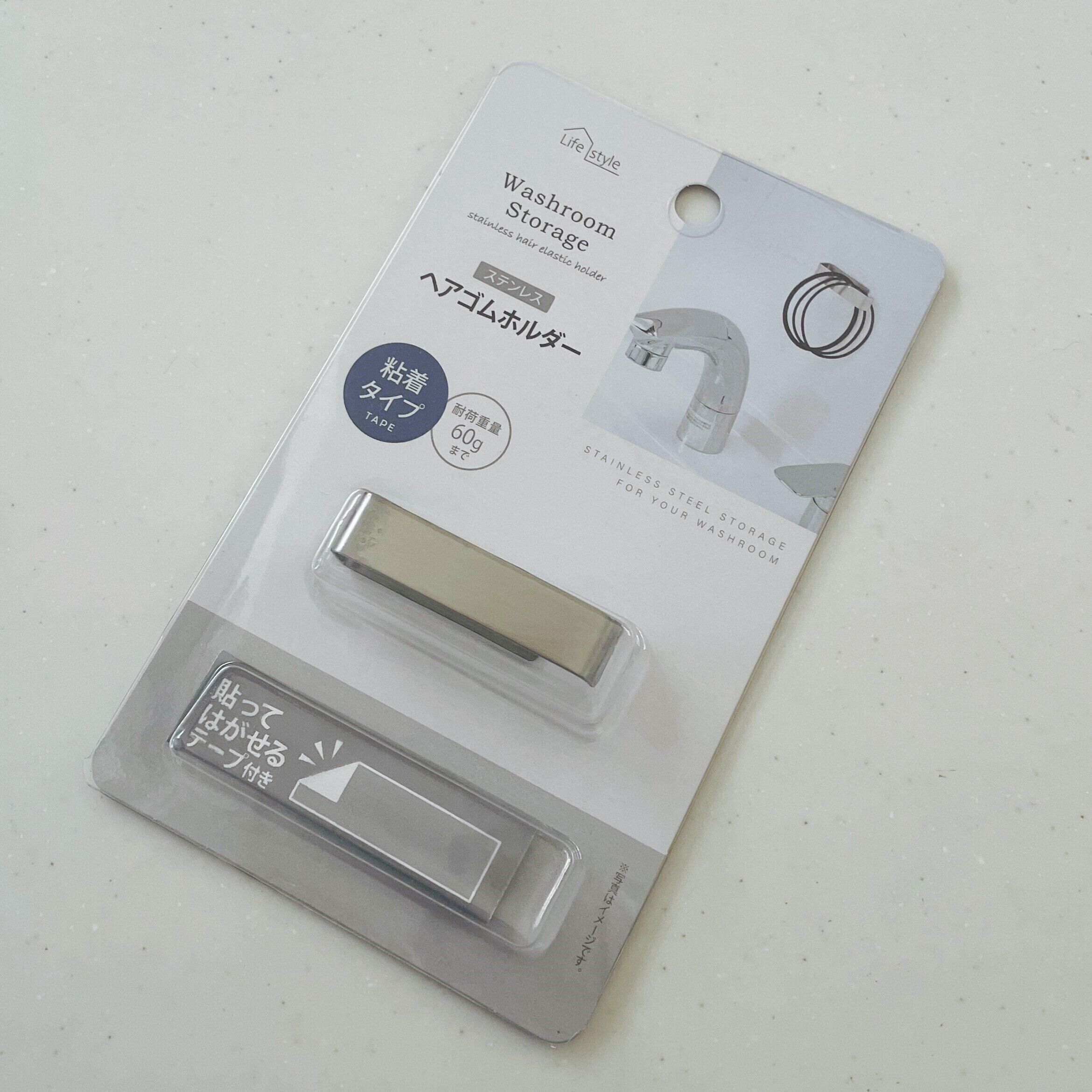 ヘアゴムホルダーも洗面台の棚裏に貼りつけて設置しました。