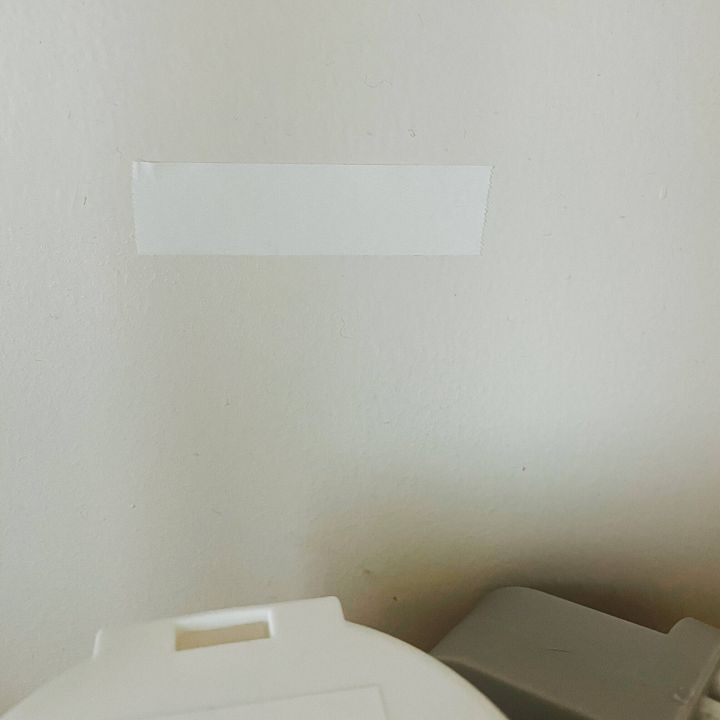 洗面台の棚の下部分にマステを貼って小物トレイを設置します。ホワイトマステにすると目立たなくてよいですよ。
