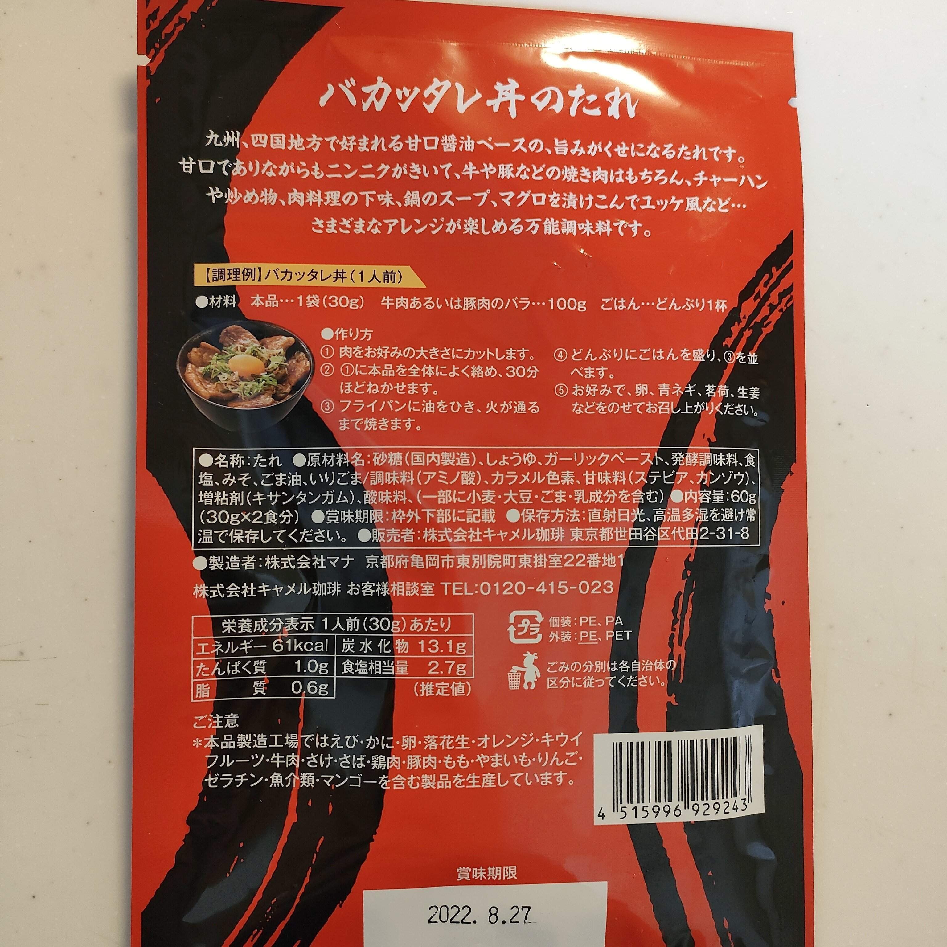 思わず叫んでしまいそうな商品ネームの「バカッタレ丼のたれ」は149円(2袋入り)です。