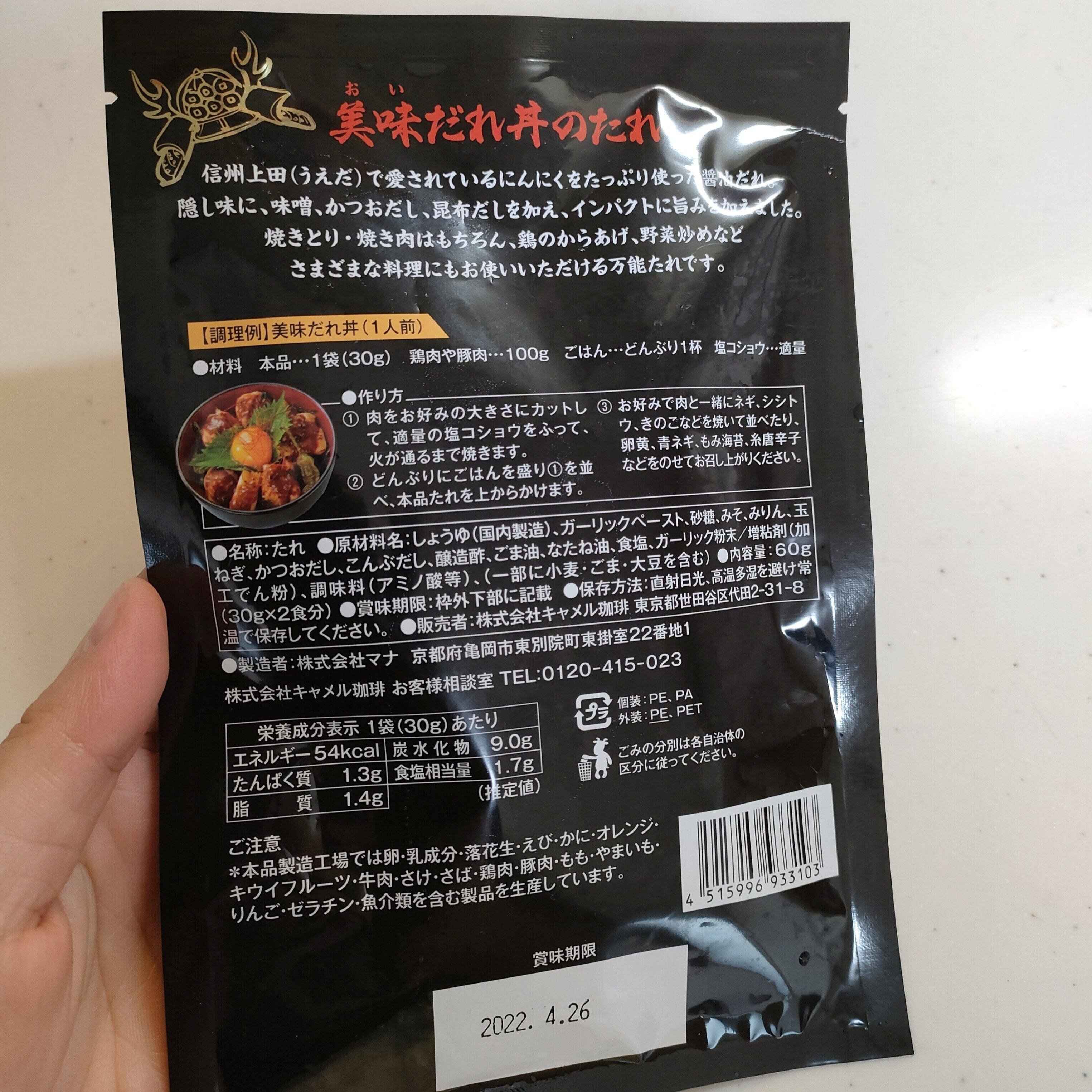 裏面記載はこちらの通りで、九州四国地方で好まれる甘口ベースのタレになっています。