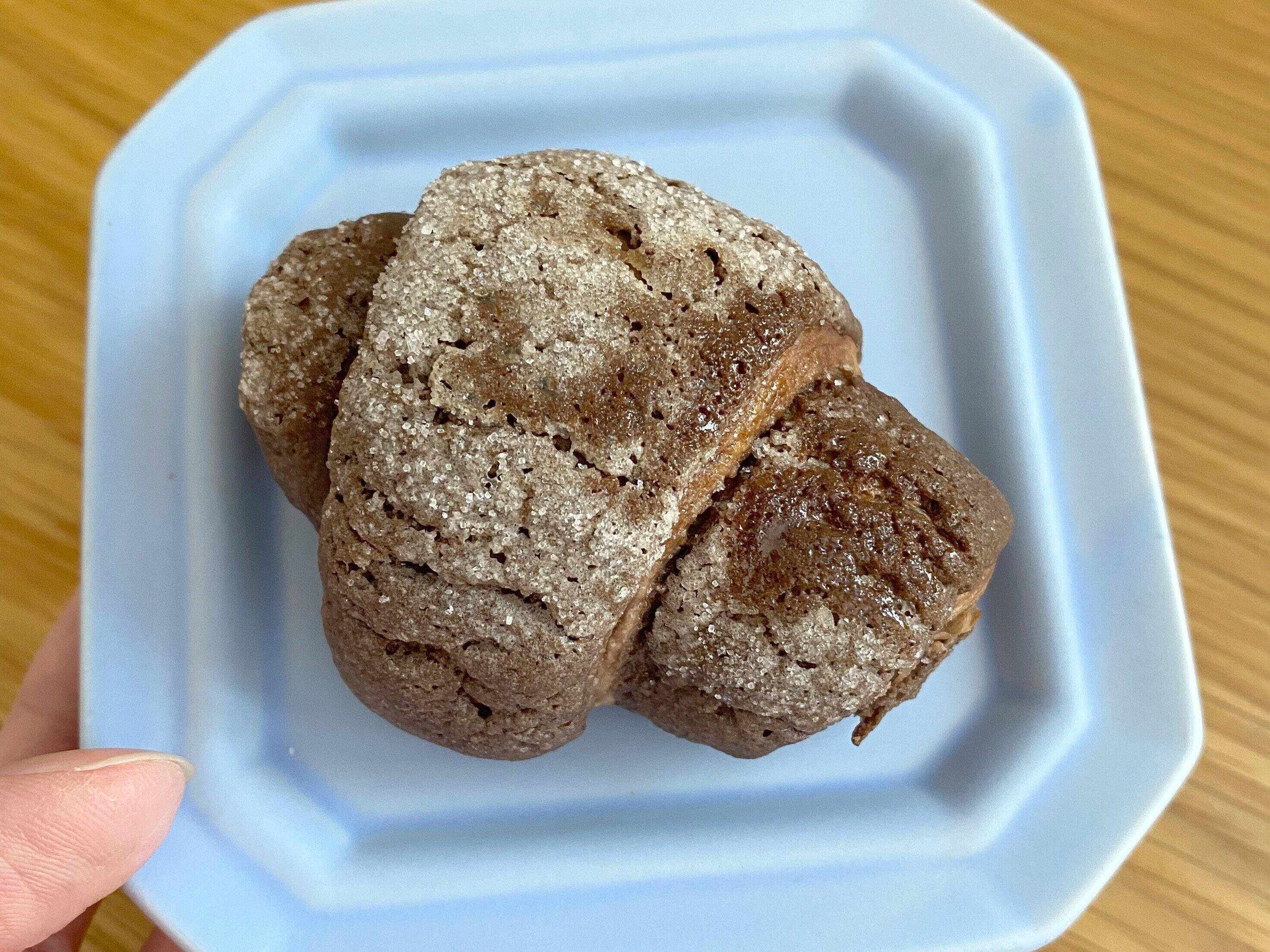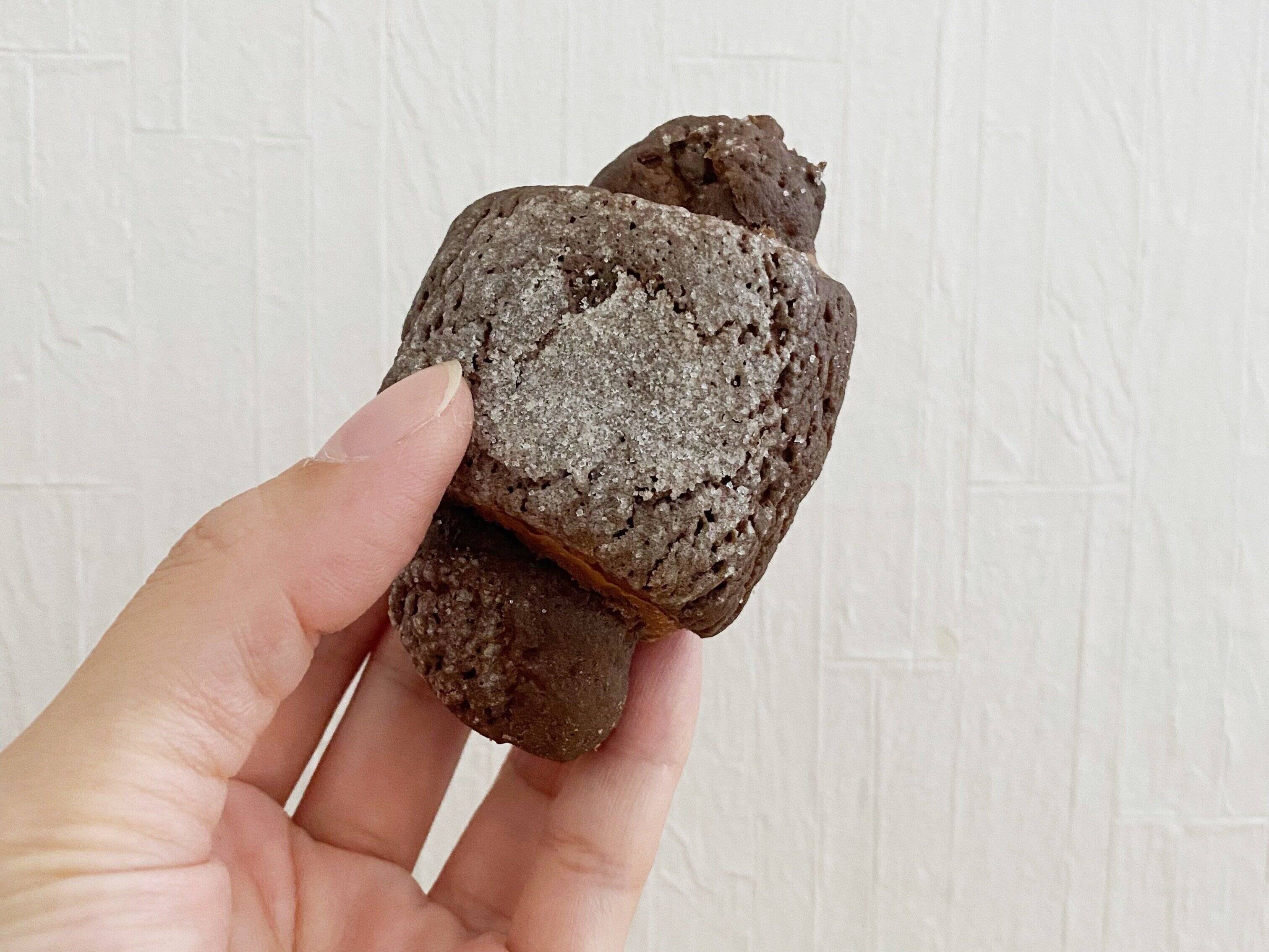 トップのクッキー生地もしっとりとしていてチョコレートの濃厚さを楽しめます。クッキー生地の上にまぶされた砂糖がジャリッとした食感で、良いアクセントになっています。