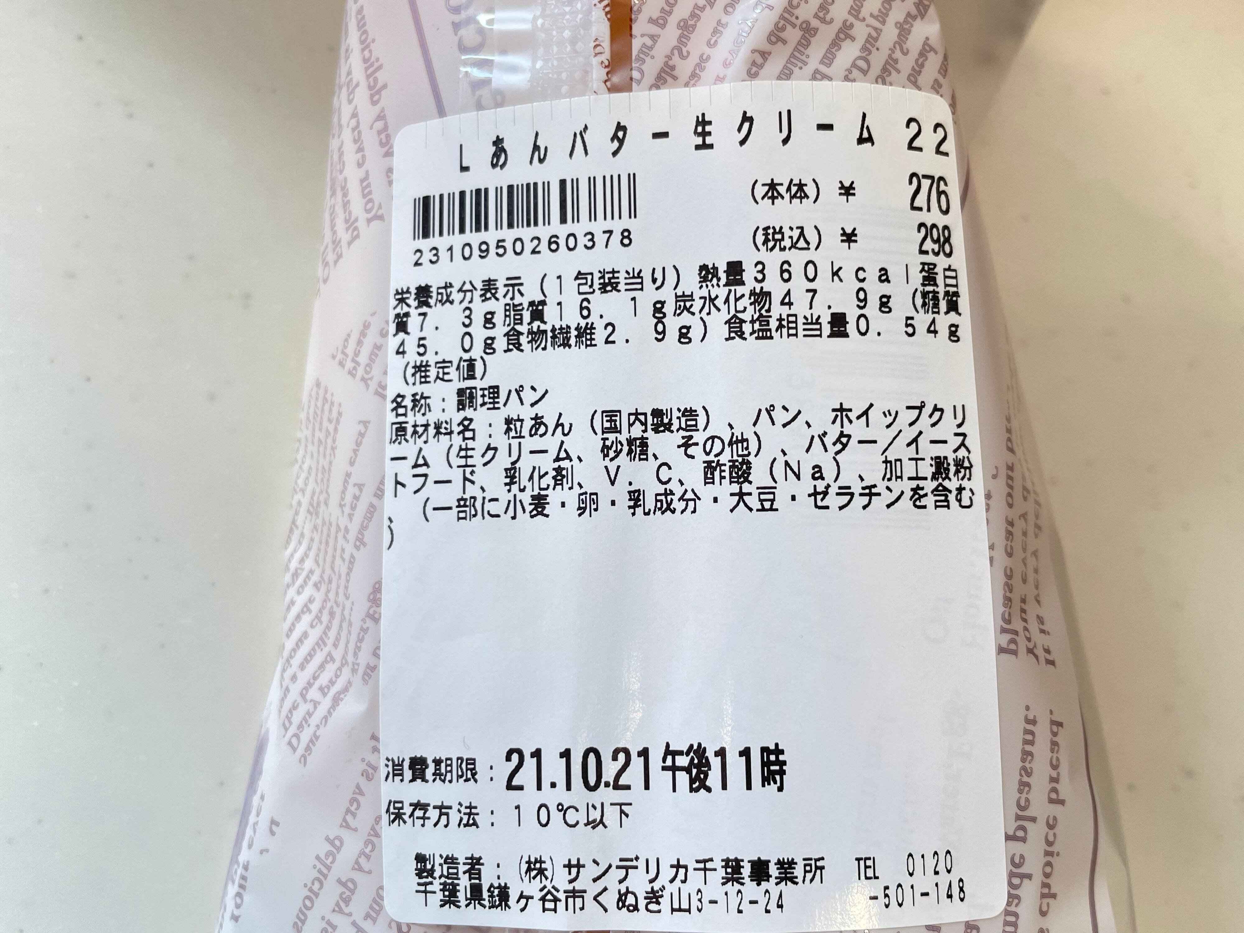 1個あたり360kcal。これだけホイップクリームが絞られていてあんバターが挟まっているし、何より大きいので納得です。