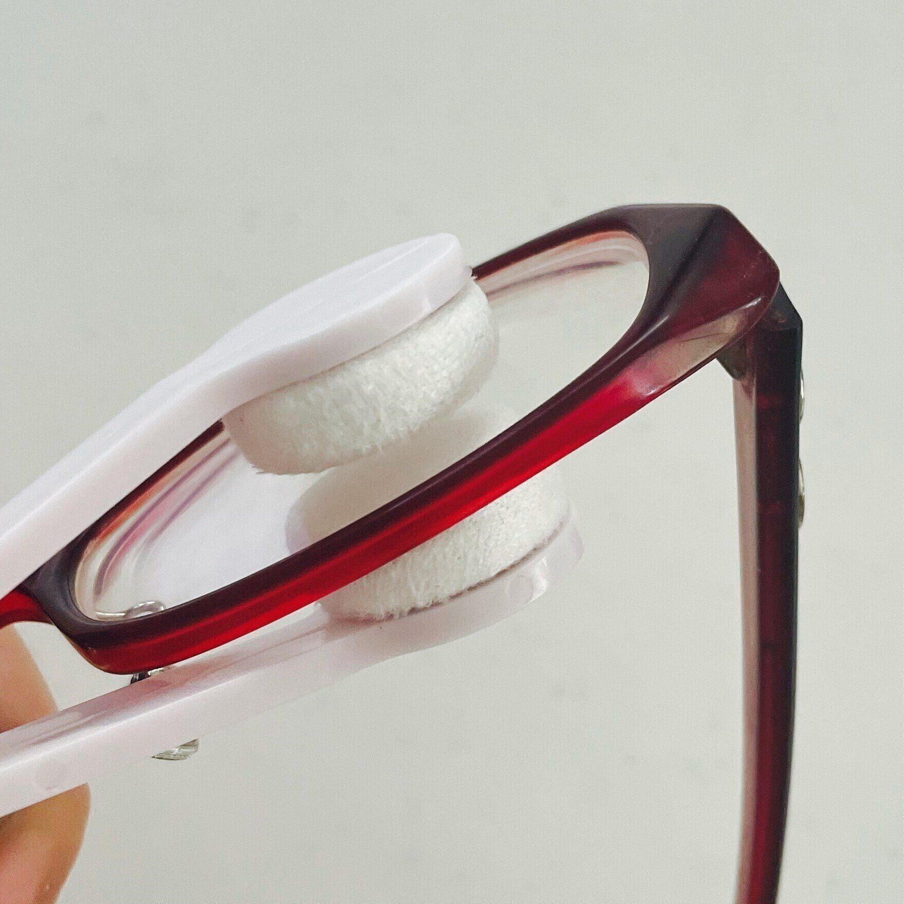 使い方はいたって簡単!本体のクッションのようなクリーナー部分の間にメガネを挿入し、レンズをはさむようにして拭き上げるだけ。