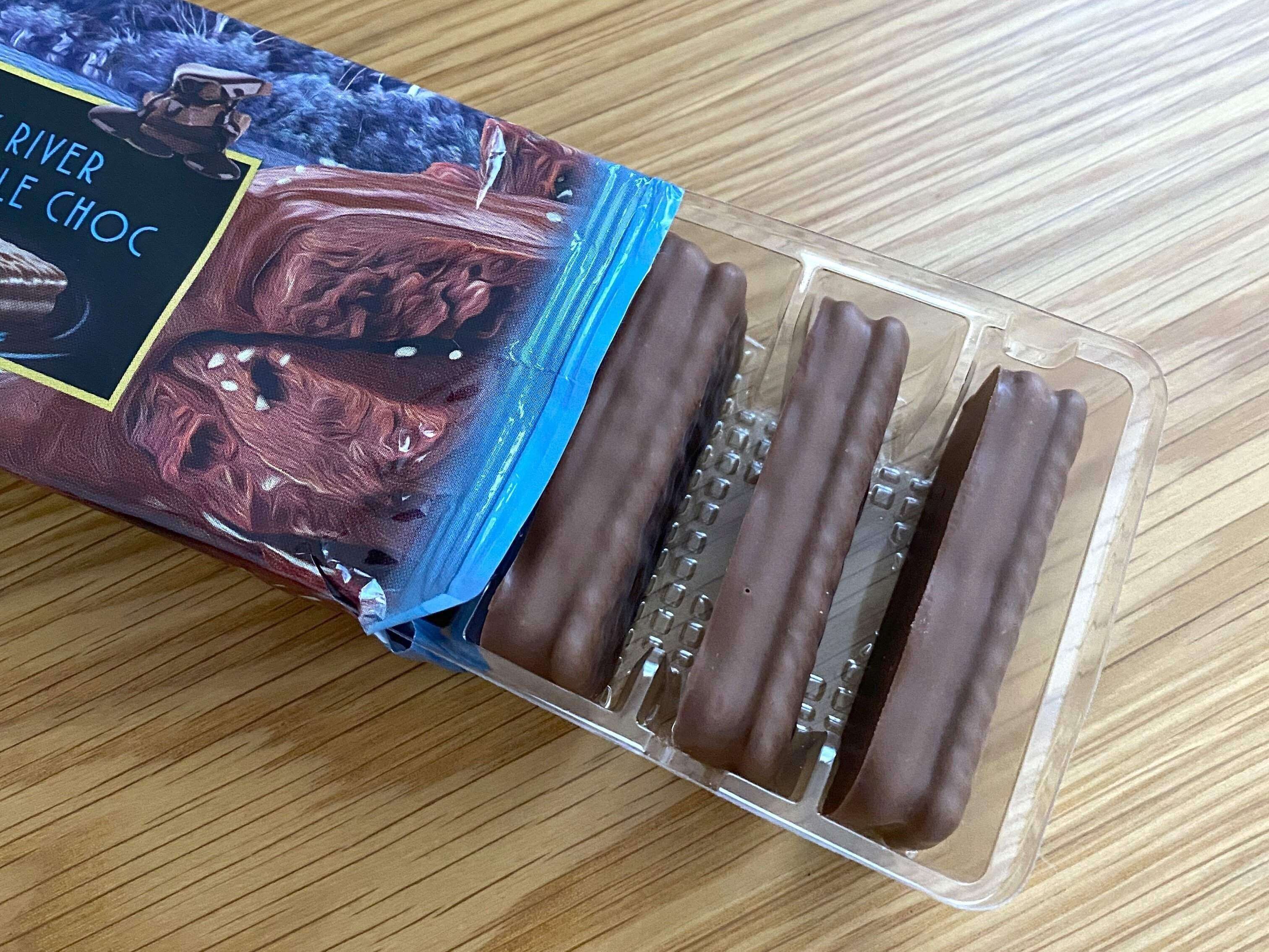 オーストラリア南東部を流れるマレーリバー。その一帯のミネラルを多く含んだ地下塩水から採られたマレーリバーソルトをチョコレートソースとココアクリームに練りこみ、ビスケットでサンド。さらにチョコレートでコーティングしたチョコづくしのビスケットです。